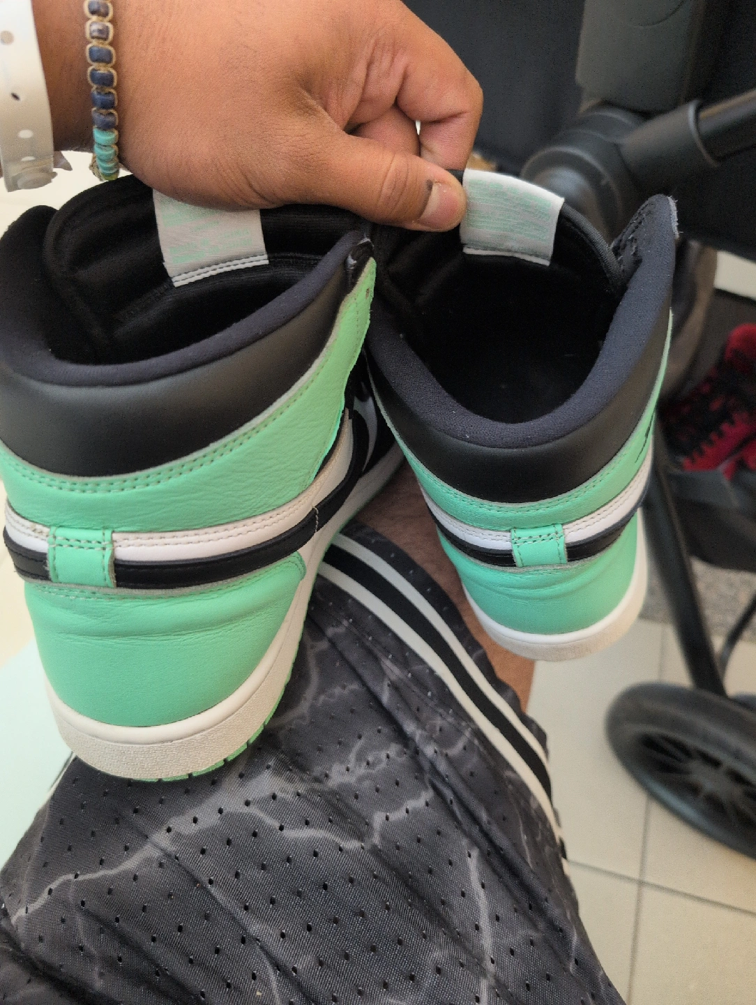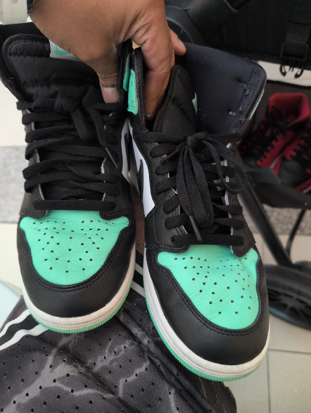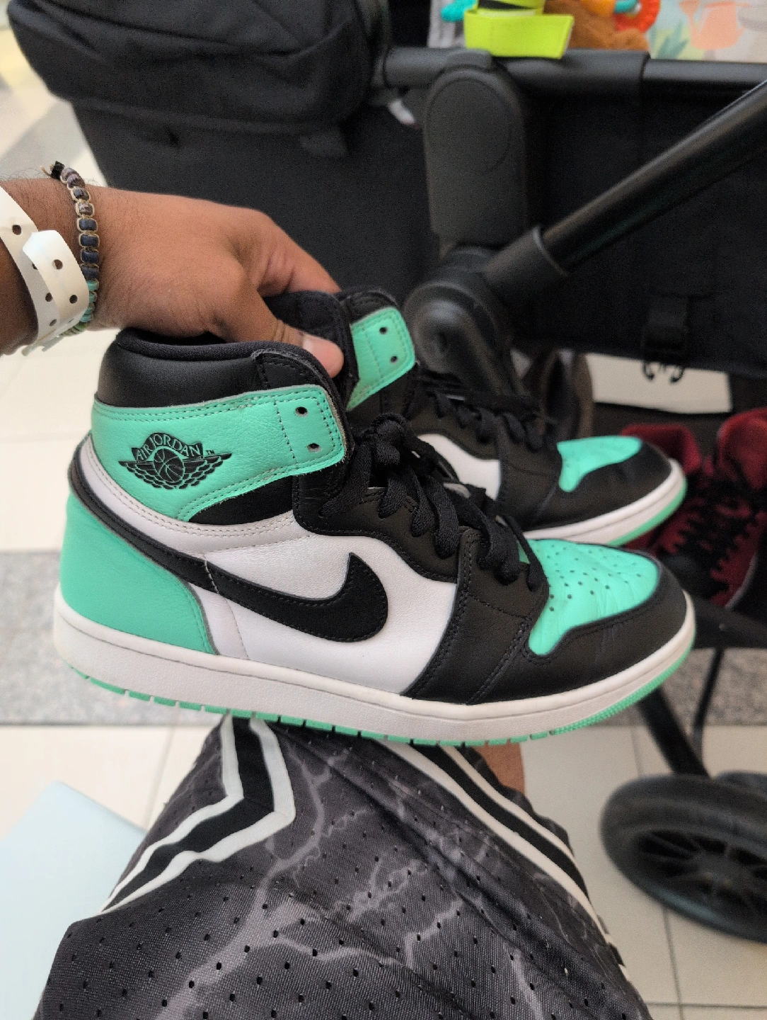 Selling a pair of Air Jordan 1 High sneakers in the greenglow colourway! These are in great condition and ready for a new home. A classic look and comfortable fit!