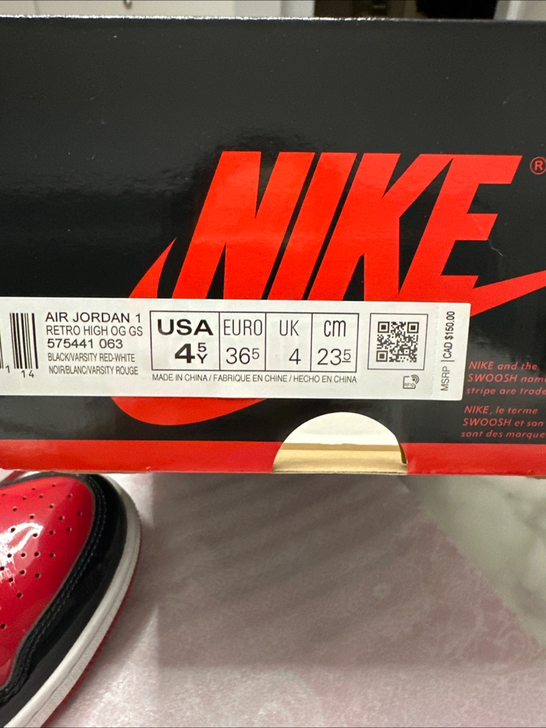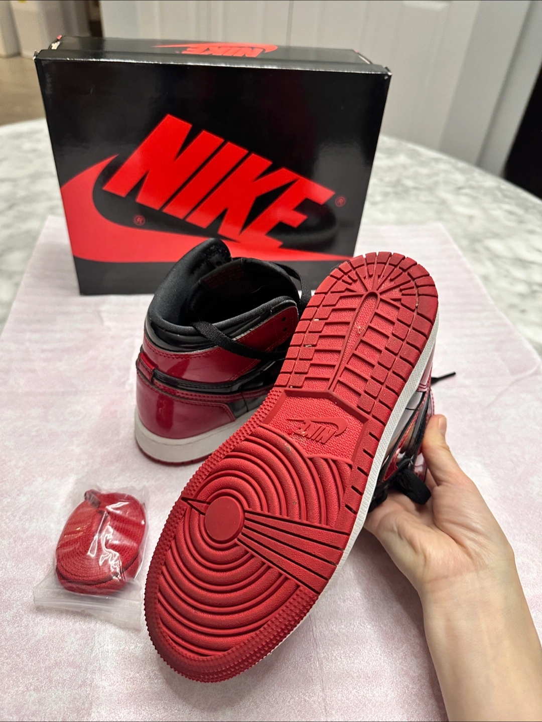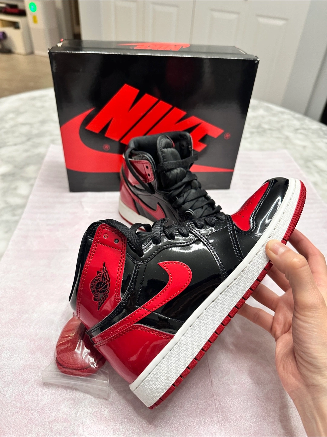 Size Y4.5 Air Jordan 1 Retro High OG GS. Patent bred If you know AJ, then you should know the meaning behind the shoes.