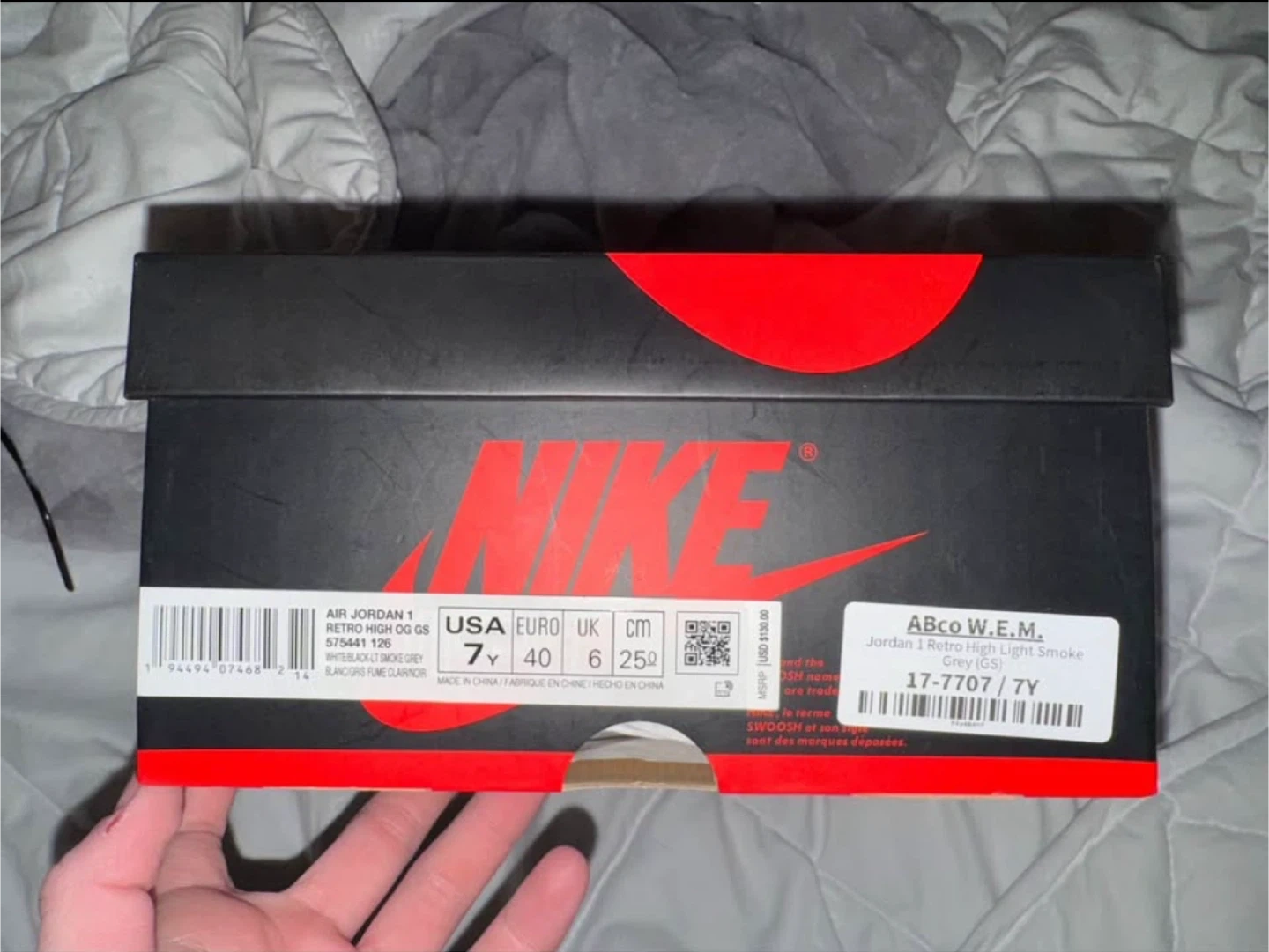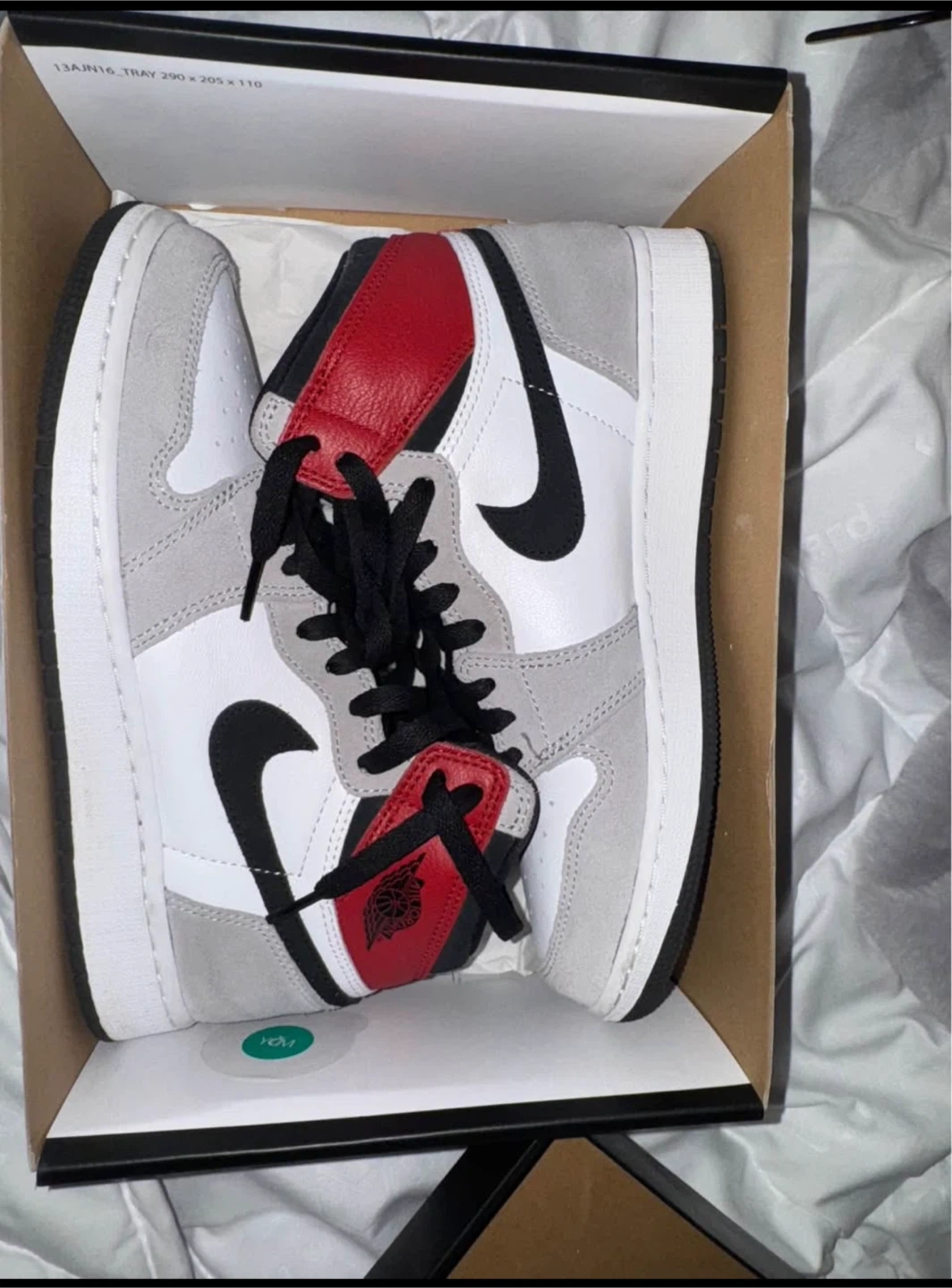 Selling a pair of Air Jordan 1 Retro High OG in the Light Smoke Grey colourway. These are a grade school size 7. The box is included!