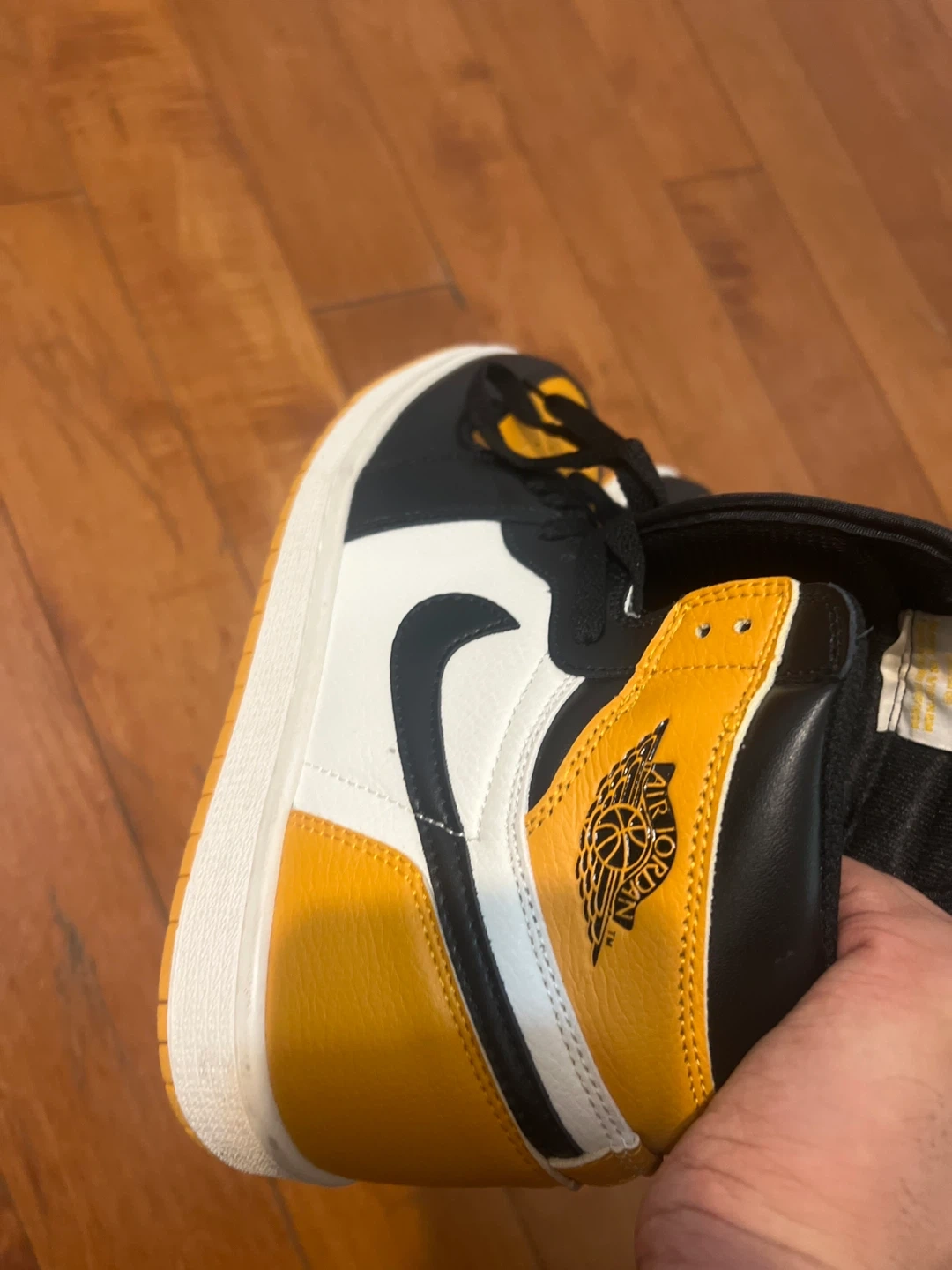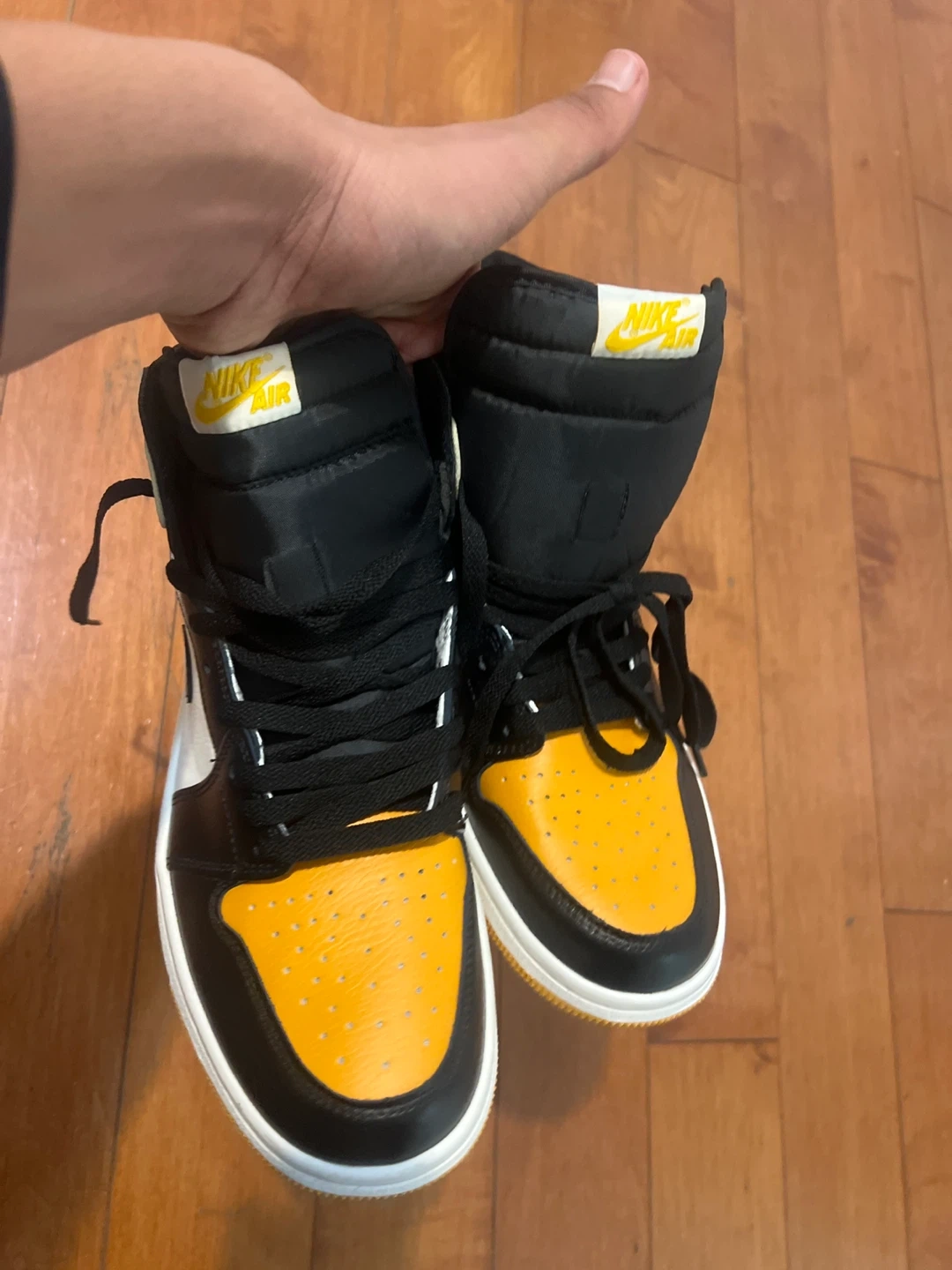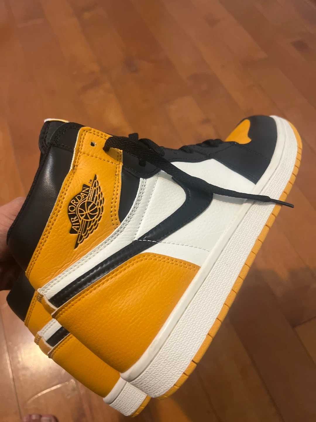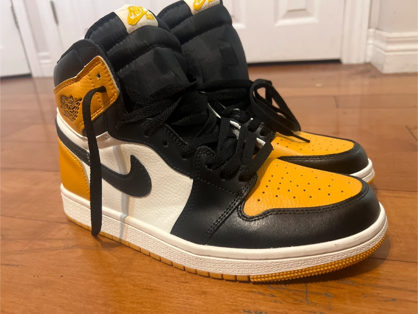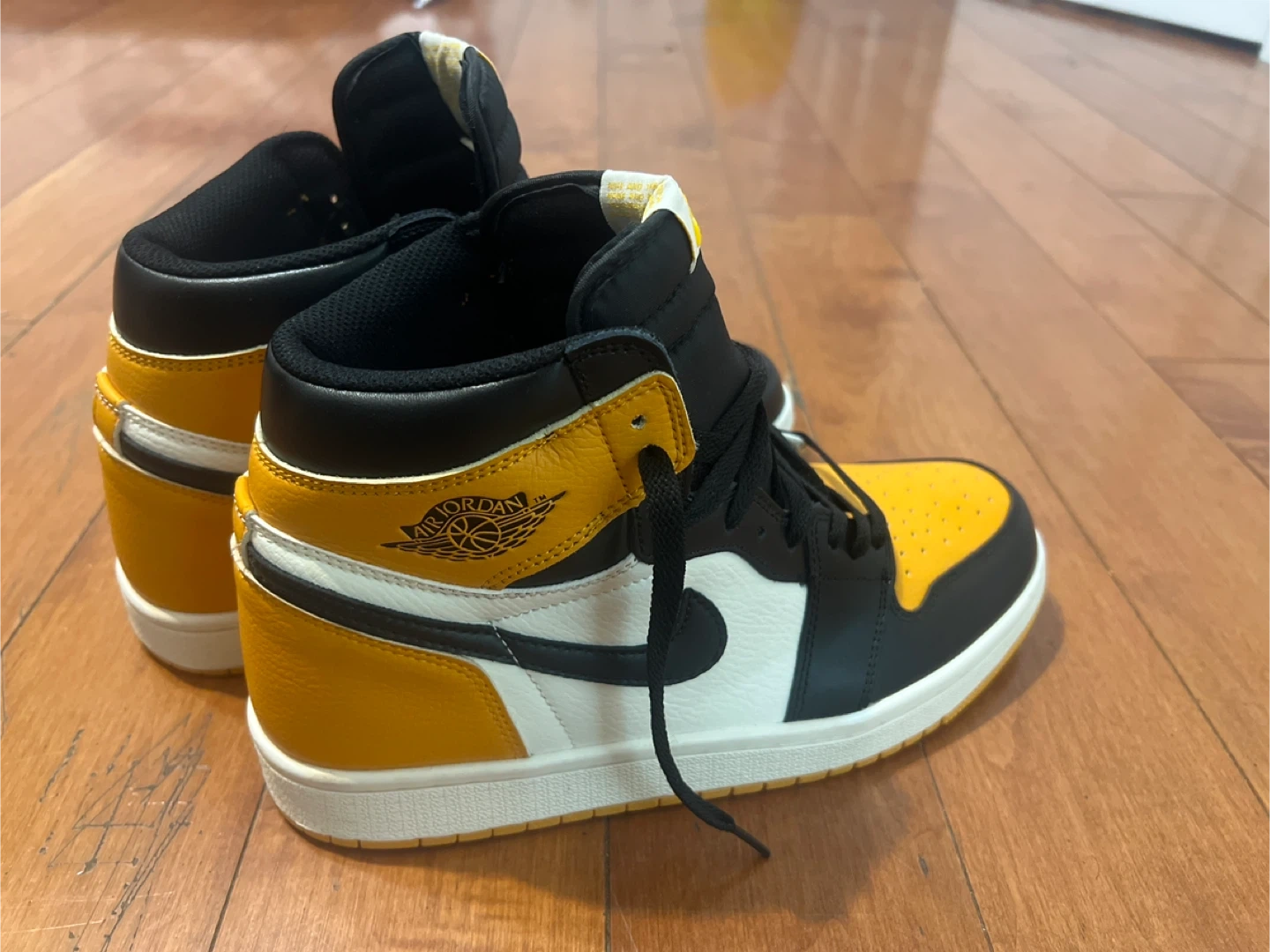 Selling a pair of Air Jordan 1 Retro High OG in the Yellow Ochre colourway. These shoes are in great condition and ready for a new home! They feature the classic Air Jordan silhouette with a stylish yellow and black design. Perfect for adding a pop of colour to your sneaker collection