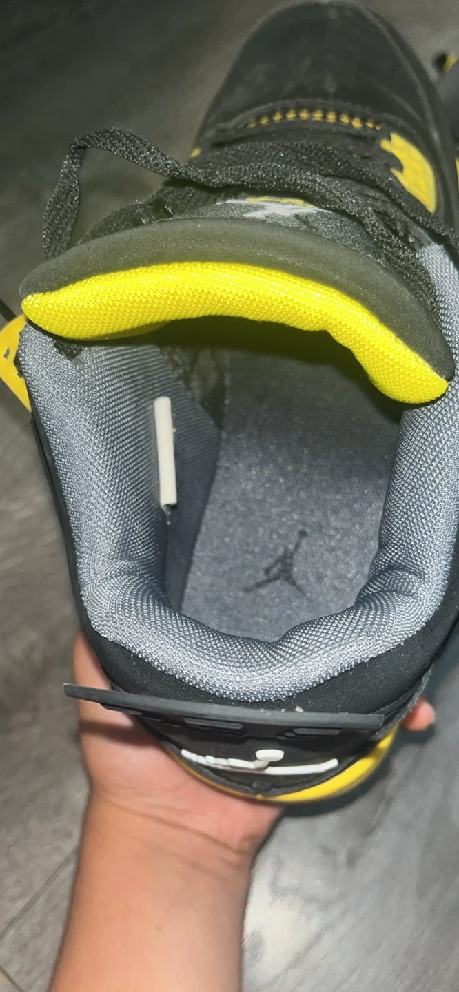 Selling a pair of Air Jordan 4 Retro shoes in a striking black and yellow colourway! These shoes have the iconic Jumpman logo and are in good condition. Perfect for adding a pop of colour to your sneaker collection