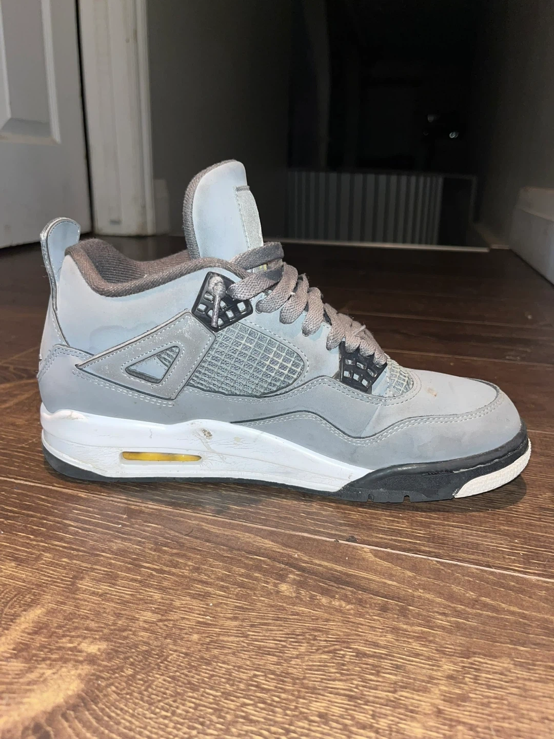 Selling a pair of Air Jordan 4 Retro in Cool Grey. They are in used condition, with some signs of wear. Please see photos for details! Size 9
