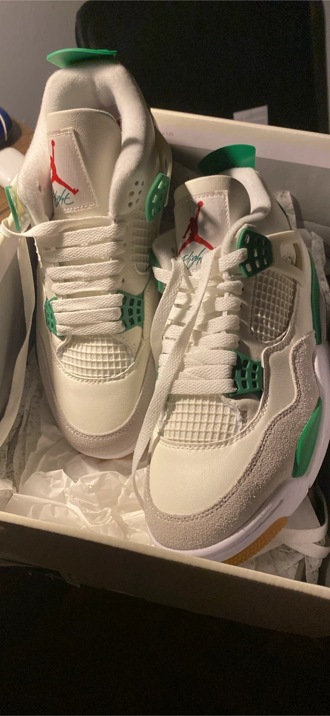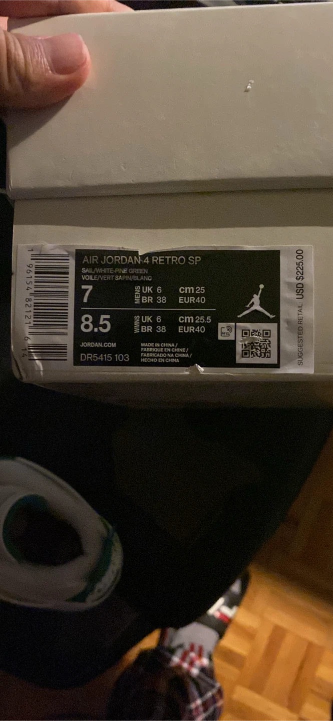 Selling a pair of Air Jordan 4 Retro SP sneakers in size 7 The colour is a stylish combination of Sail/Vert Sapin/Blanc. Comes with the original box!
