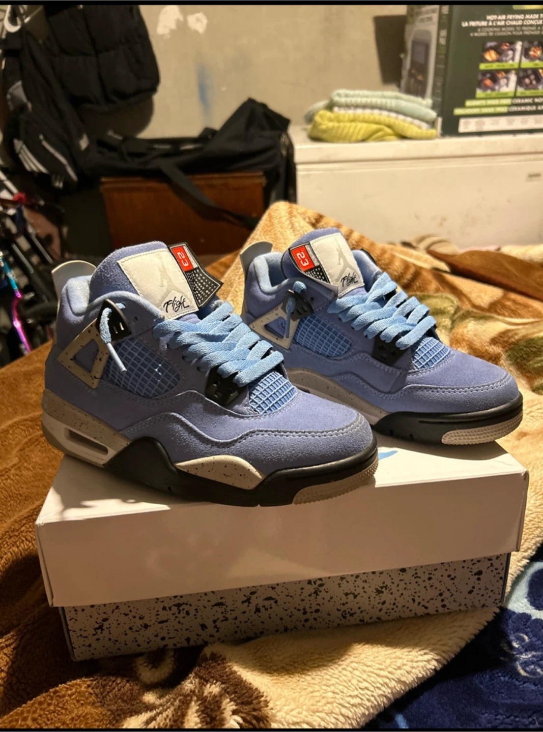 Selling a pair of Air Jordan 4 Retro in the University Blue colourway. They come with the original box and are in great condition. Perfect for any sneakerhead!