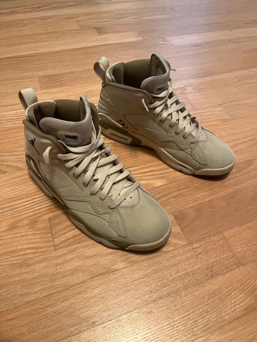 Selling a pair of Air Jordan 6 Retro sneakers in an olive colourway. These are in great condition and ready for a new home. Great for everyday wear or adding to your collection! Never worn was on my display.(Without box)