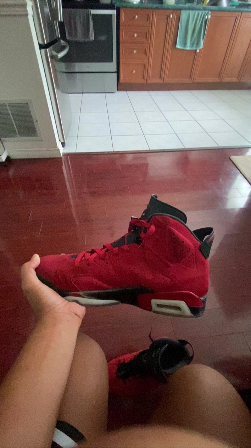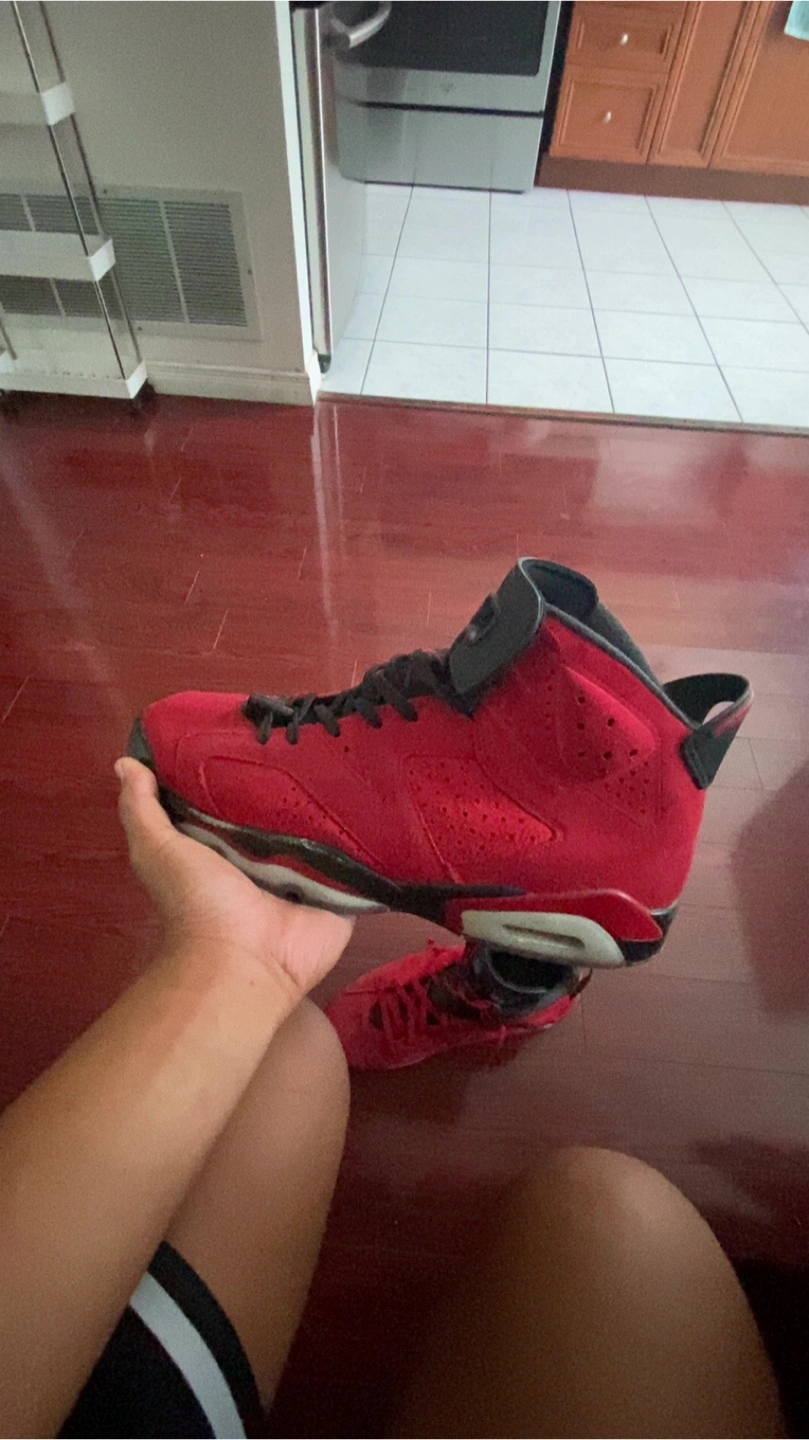 Selling a pair of Air Jordan 6 Retro in the Red and black colourway. They are in good condition and the size is US 12. I pay 500 for this and bearly use