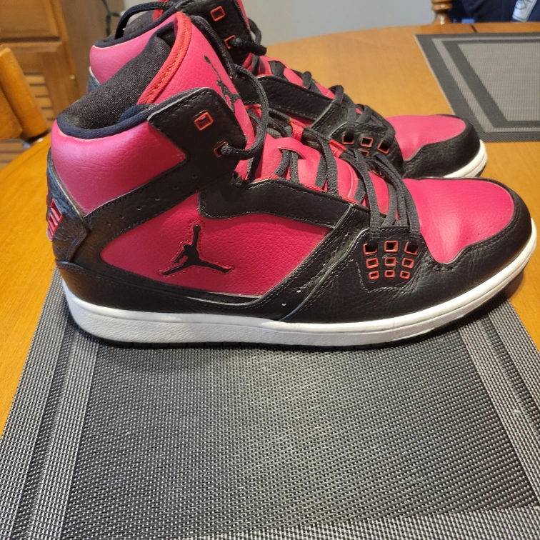 Air Jordan high top sneakers in a red and black colourway. These sneakers are in excellent condition. Please see photos for details! size 11