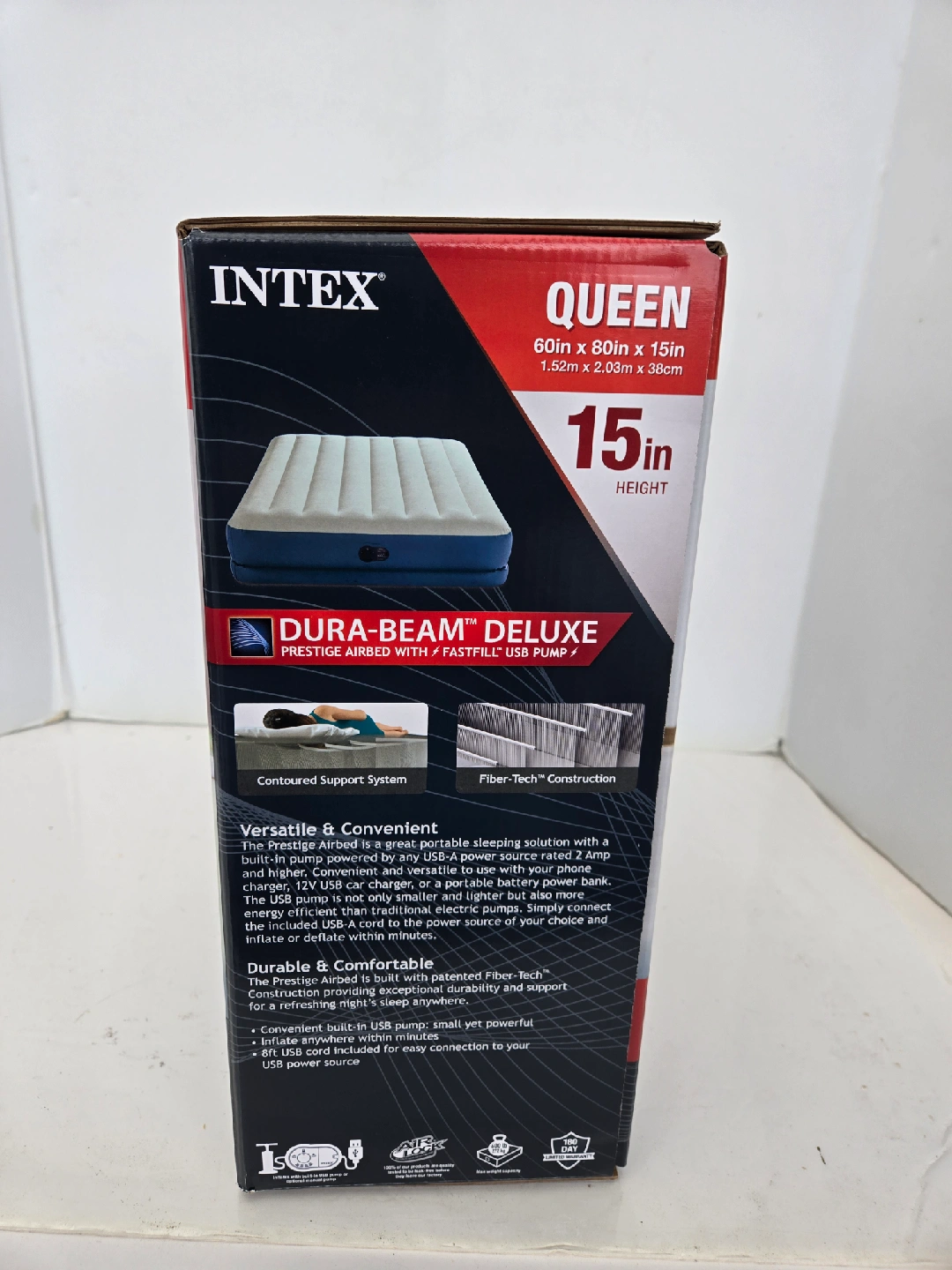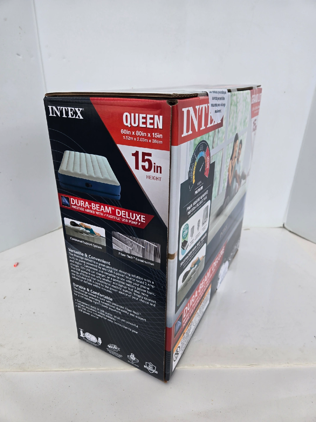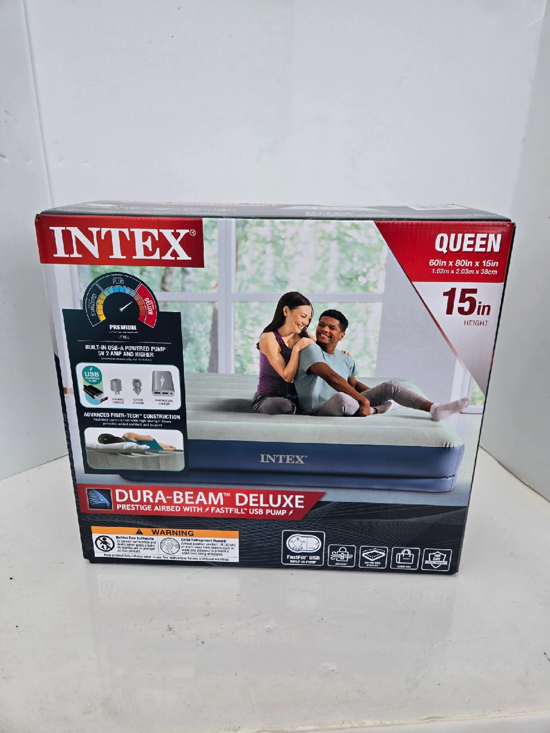 INTEX Dura-Beam Air Mattress w/ Built-in USB-powered Pump, 15in. Queen Brand new intex air mattress. New sealed by manufacturer never opened. Price is firm Pick up near 22nd skytrain new west