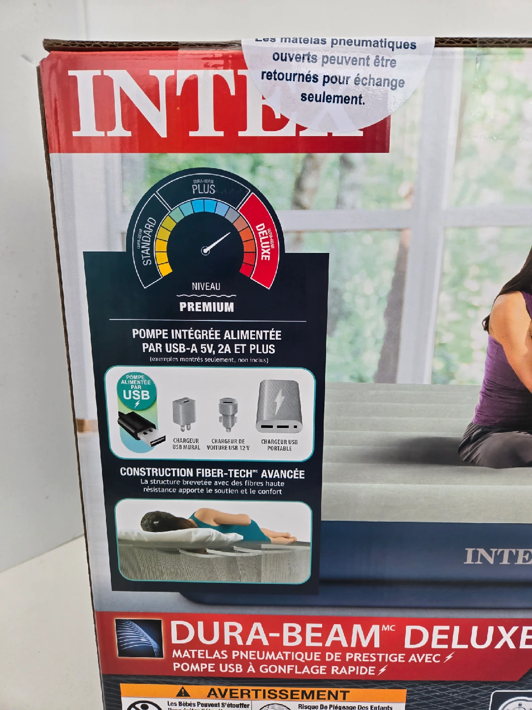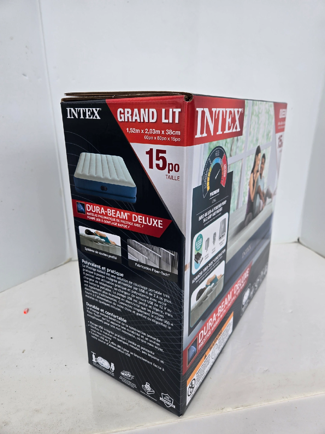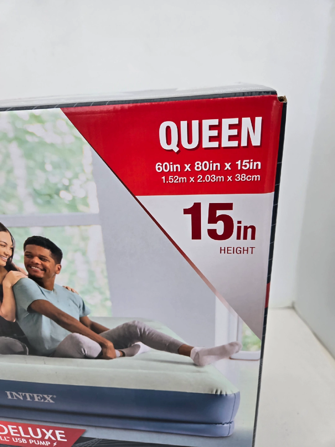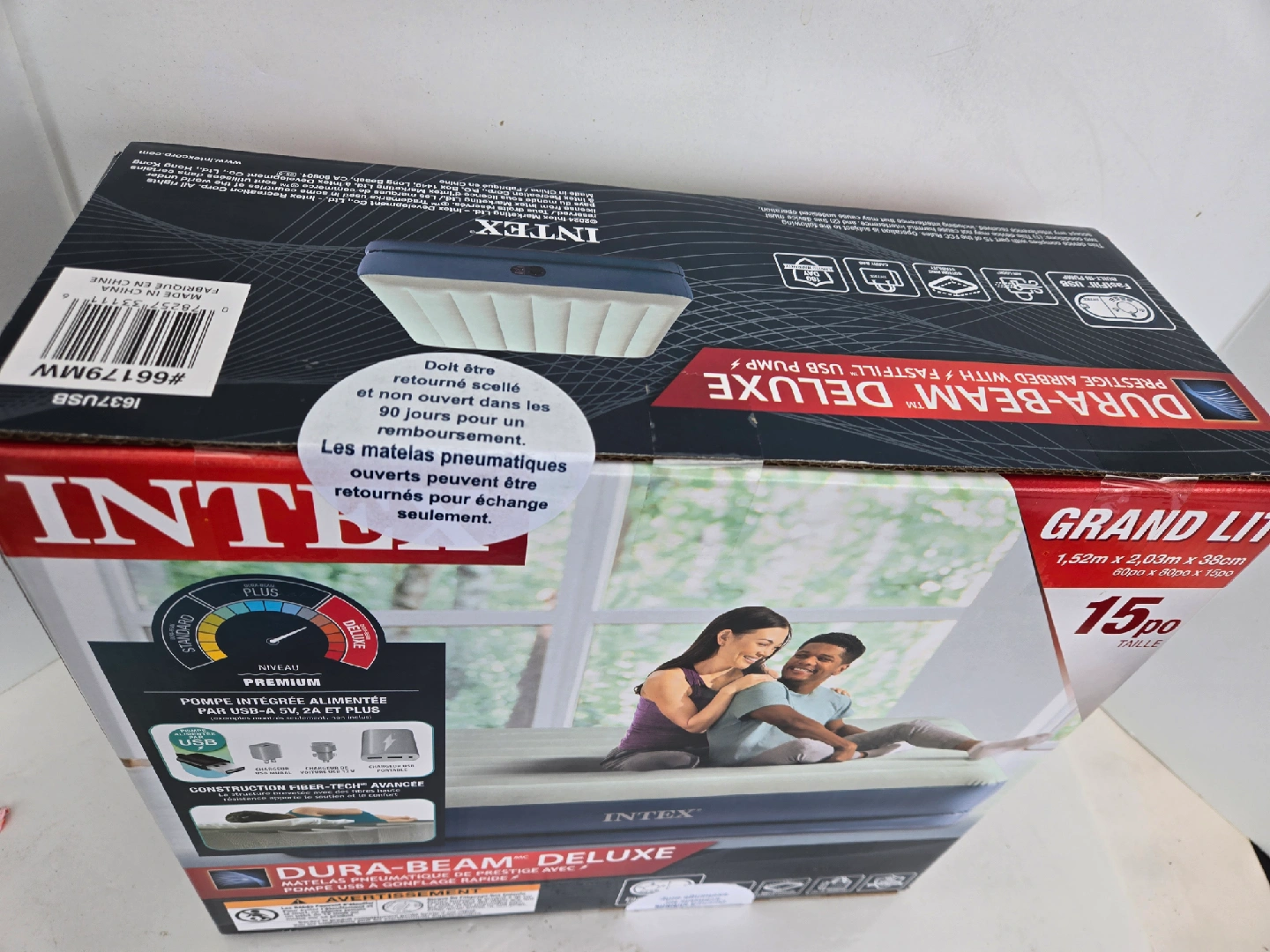 INTEX Dura-Beam Air Mattress w/ Built-in USB-powered Pump, 15in. Queen Brand new intex air mattress. New sealed by manufacturer never opened. Price is firm Pick up near 22nd skytrain new west