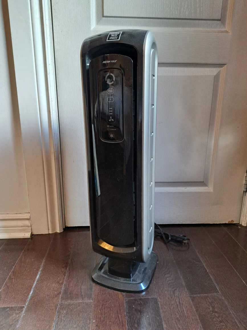 28" air filter, great for basements! Only used for 6 months in a smoke-free and pet-free home. Comes with extra filters.