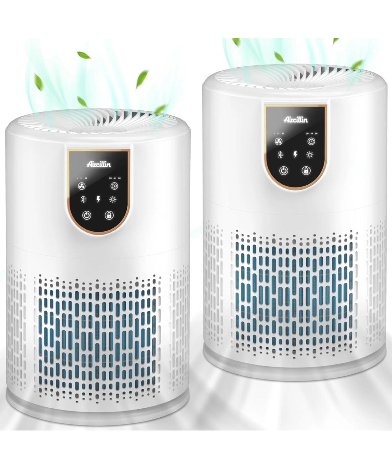 Looking to freshen up your space? This Aircillin desktop air purifier is just the ticket! It's got a handy aromatherapy diffuser, and it's perfect for any room. It's about 10 inches tall and 7 inches wide, so it won't take up too much space. Plus, it comes with 12 aroma pads to get you started! 2 Pack Air Purifiers for Home Bedroom,Aircillin H13 True HEPA Filter Air Cleaner Remove 99.97% 0.3 Micron Particles/Smoke/Pet Dander/Pollen/Odor/for Office, Dorm, Apartment, Kitchen (AP0801)