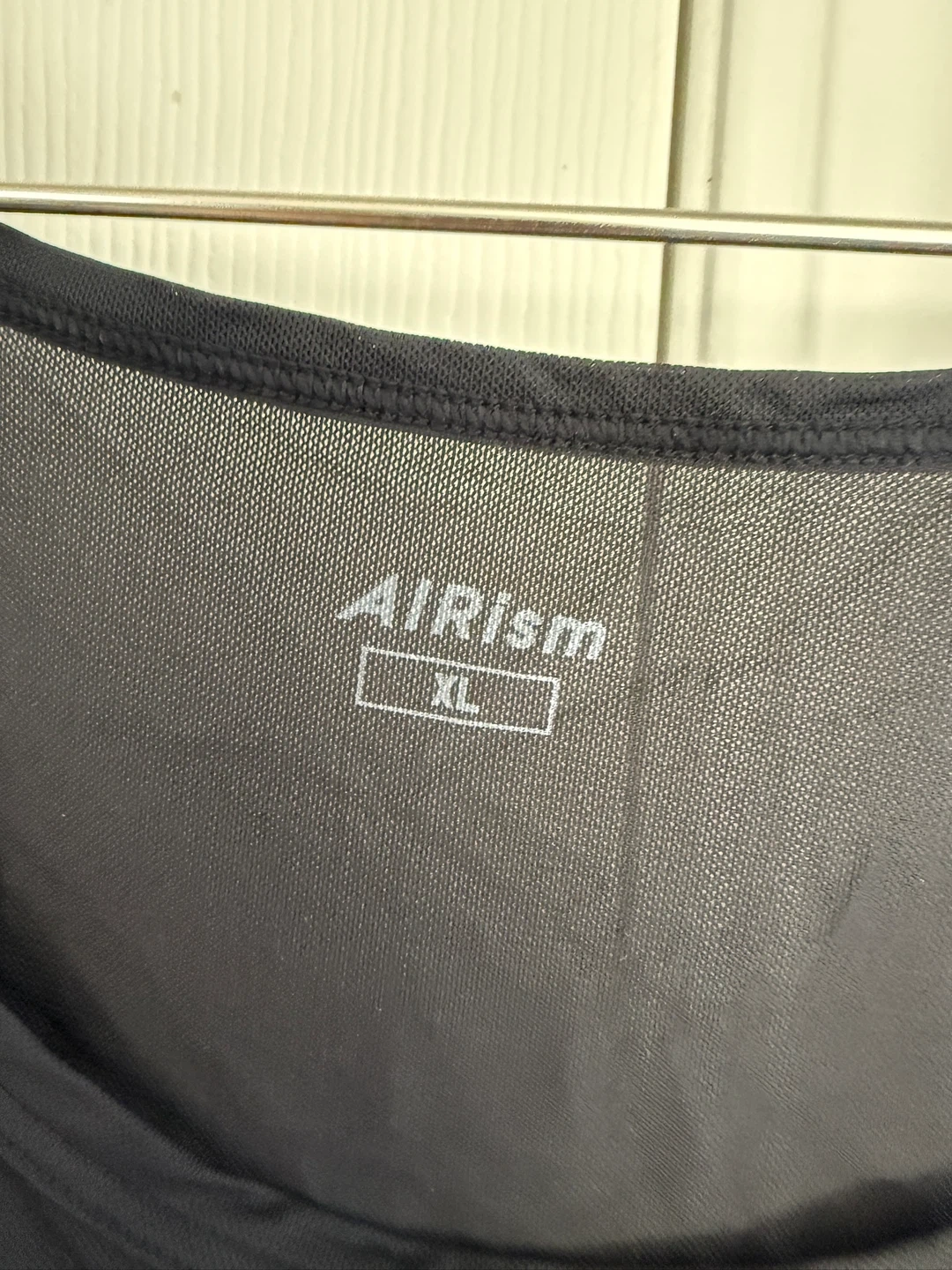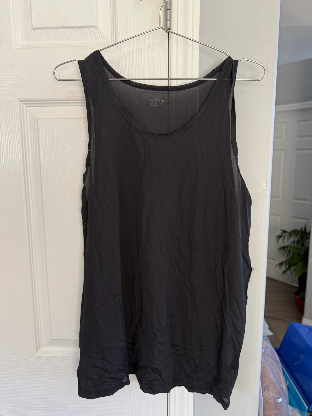 Selling an AIRism tank top in black, size XL. It's in great condition and perfect for layering or wearing on its own. It's lightweight and breathable, making it super comfy for everyday wear!