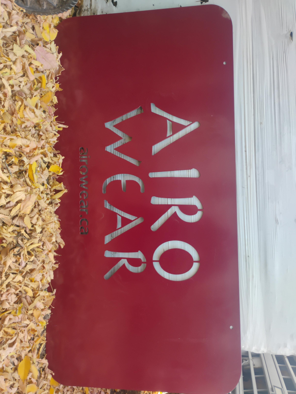 Selling an Airo Wear sign. It's red with the brand name cut out. Perfect for adding a touch of style to your space!
