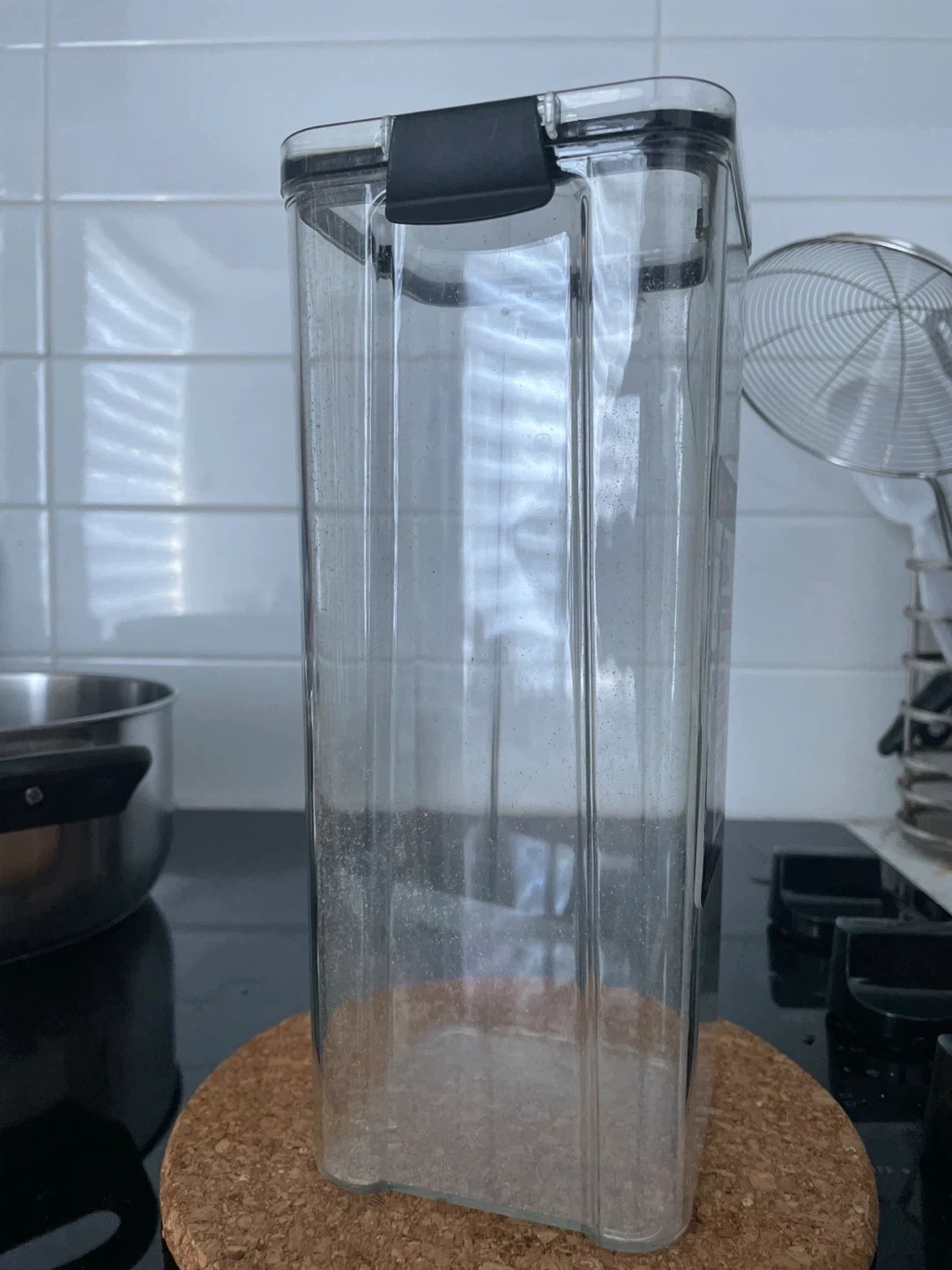 Selling a clear, airtight food storage container. It's great for keeping your pantry organized and your food fresh. Perfect for storing cereal, pasta, snacks, and more!