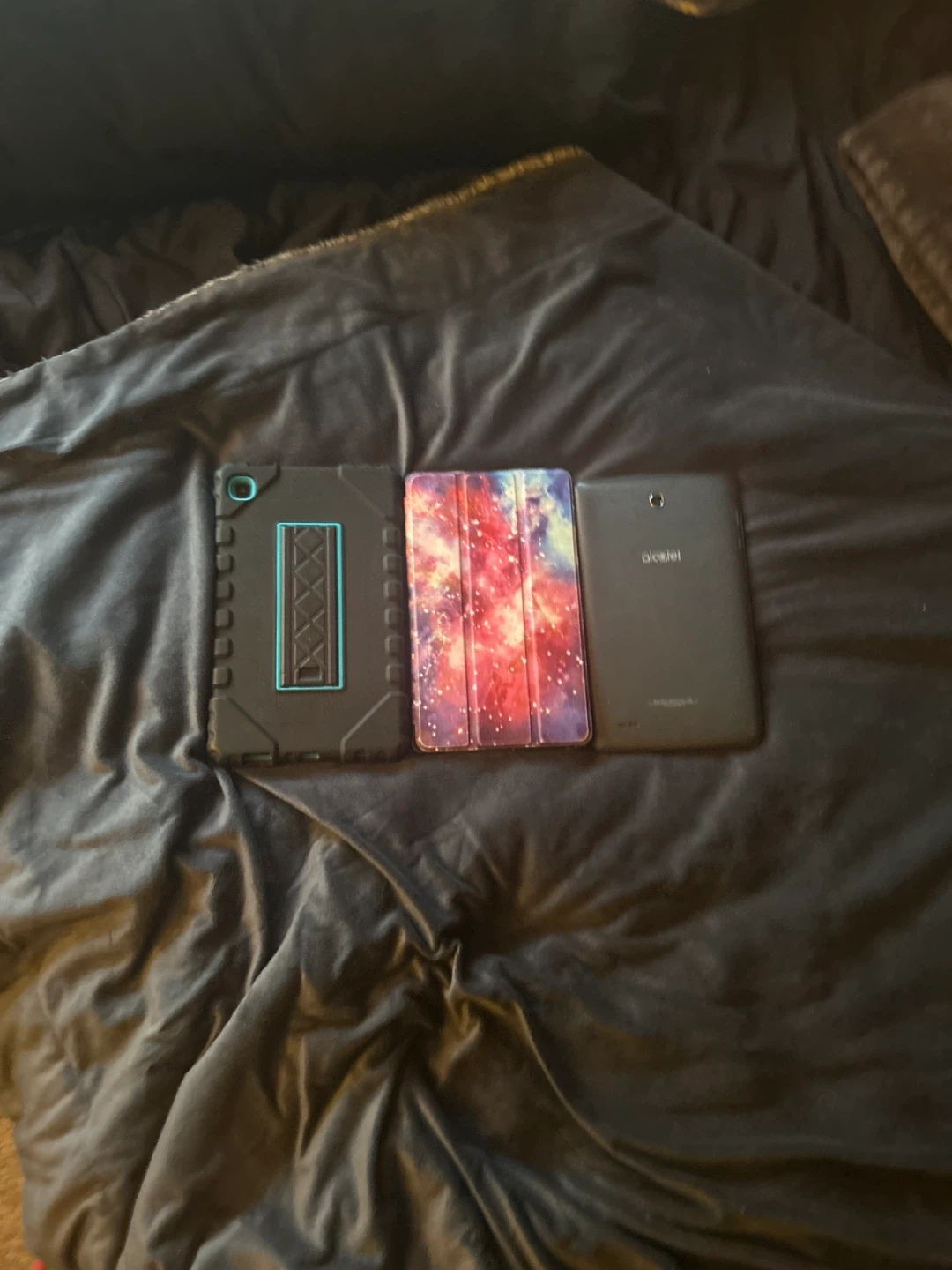 Selling a bundle that comes with 3 tablets. All tablets in good condition Samsung (galaxy case)=$80 Blue and black Samsung=$70 Black Alcatel=$60