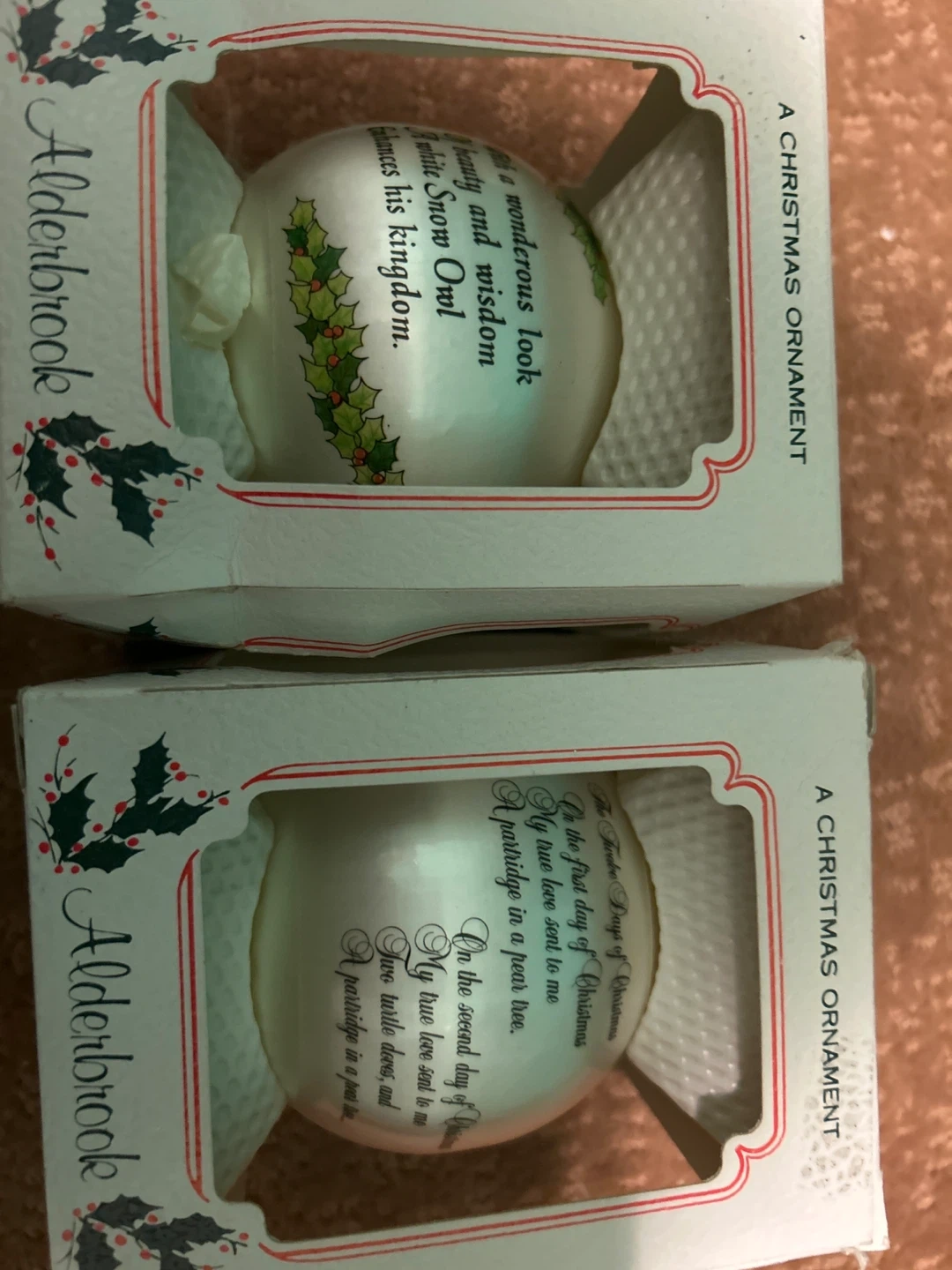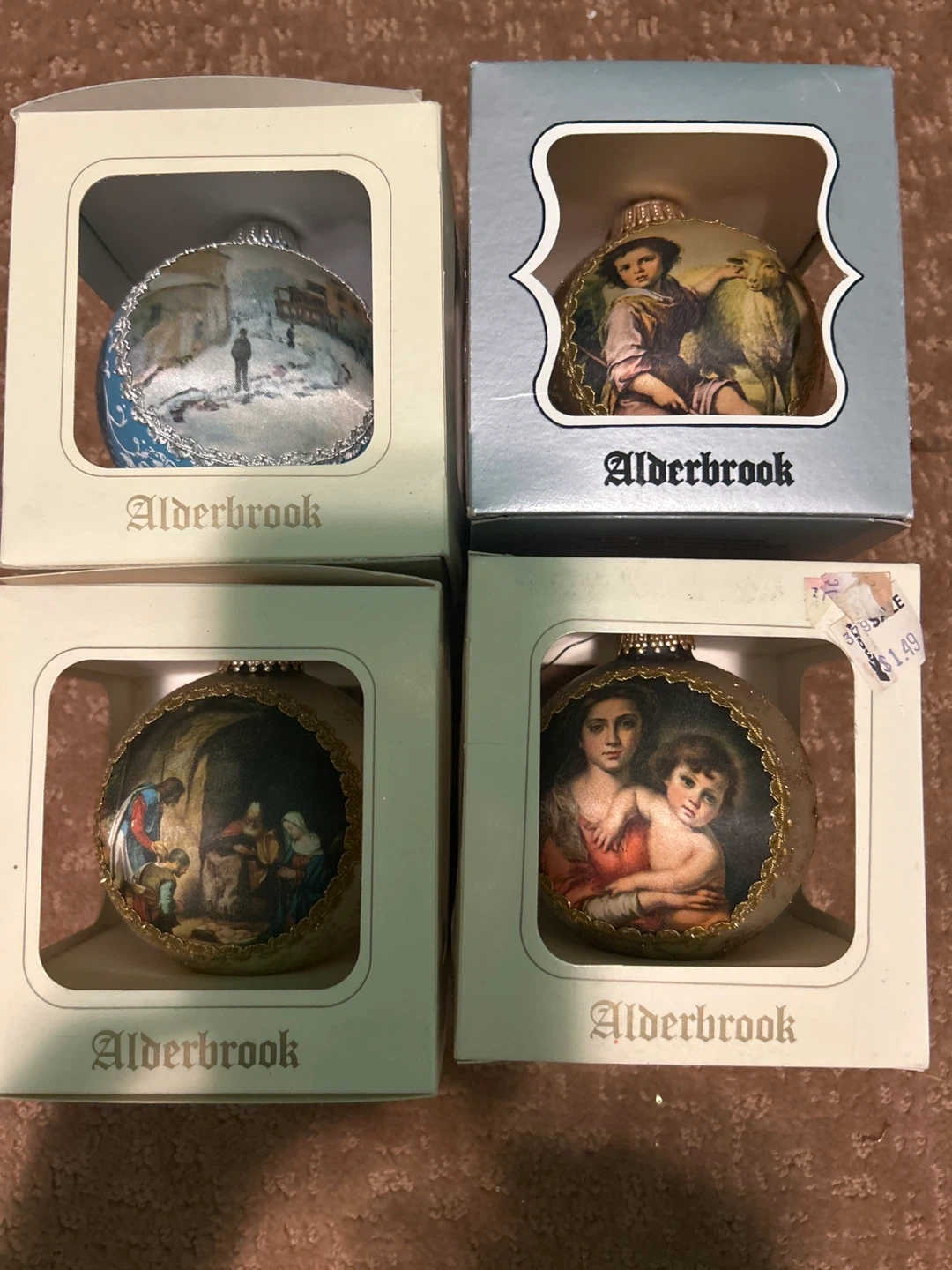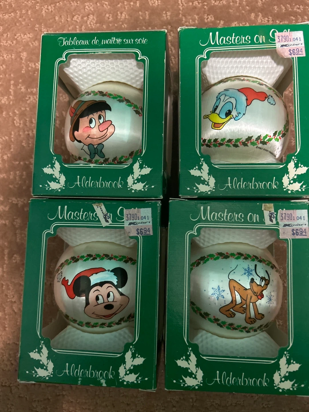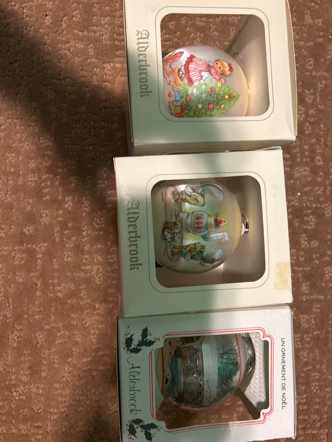 Selling a collection of Alderbrook Christmas ornaments! They come in their original boxes and feature a variety of designs, including Disney characters and classic Christmas scenes Items may be purchased as complete set of 14 or $3 each .