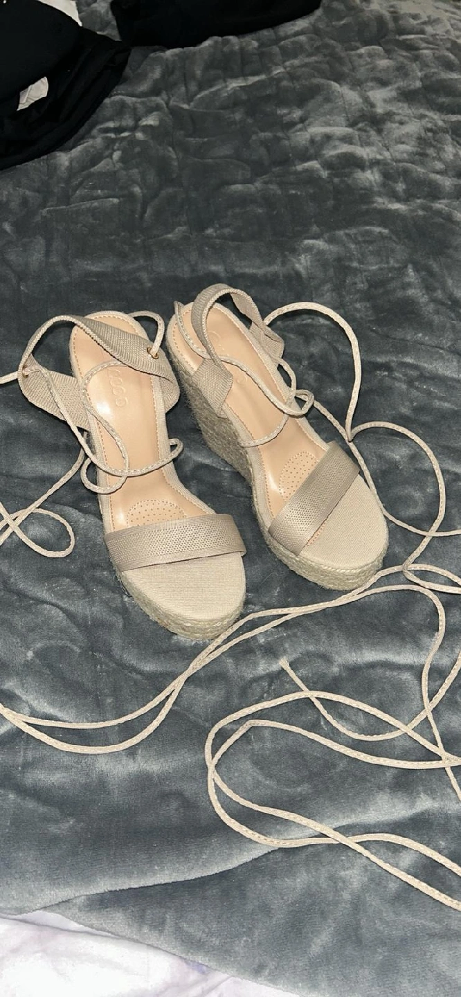 These ALDO espadrille wedge sandals are in great condition and ready for a new home! They are a neutral beige colour and a size 7. Perfect for adding a bit of height and style to your summer outfits!