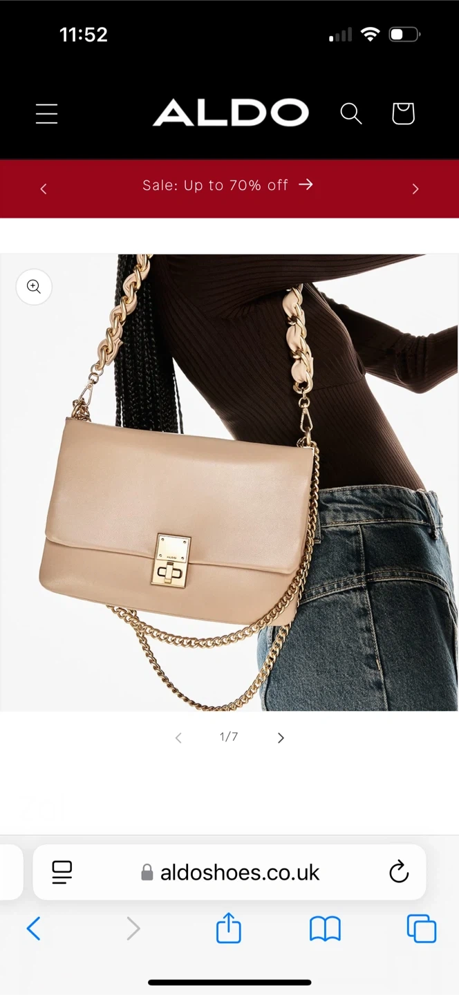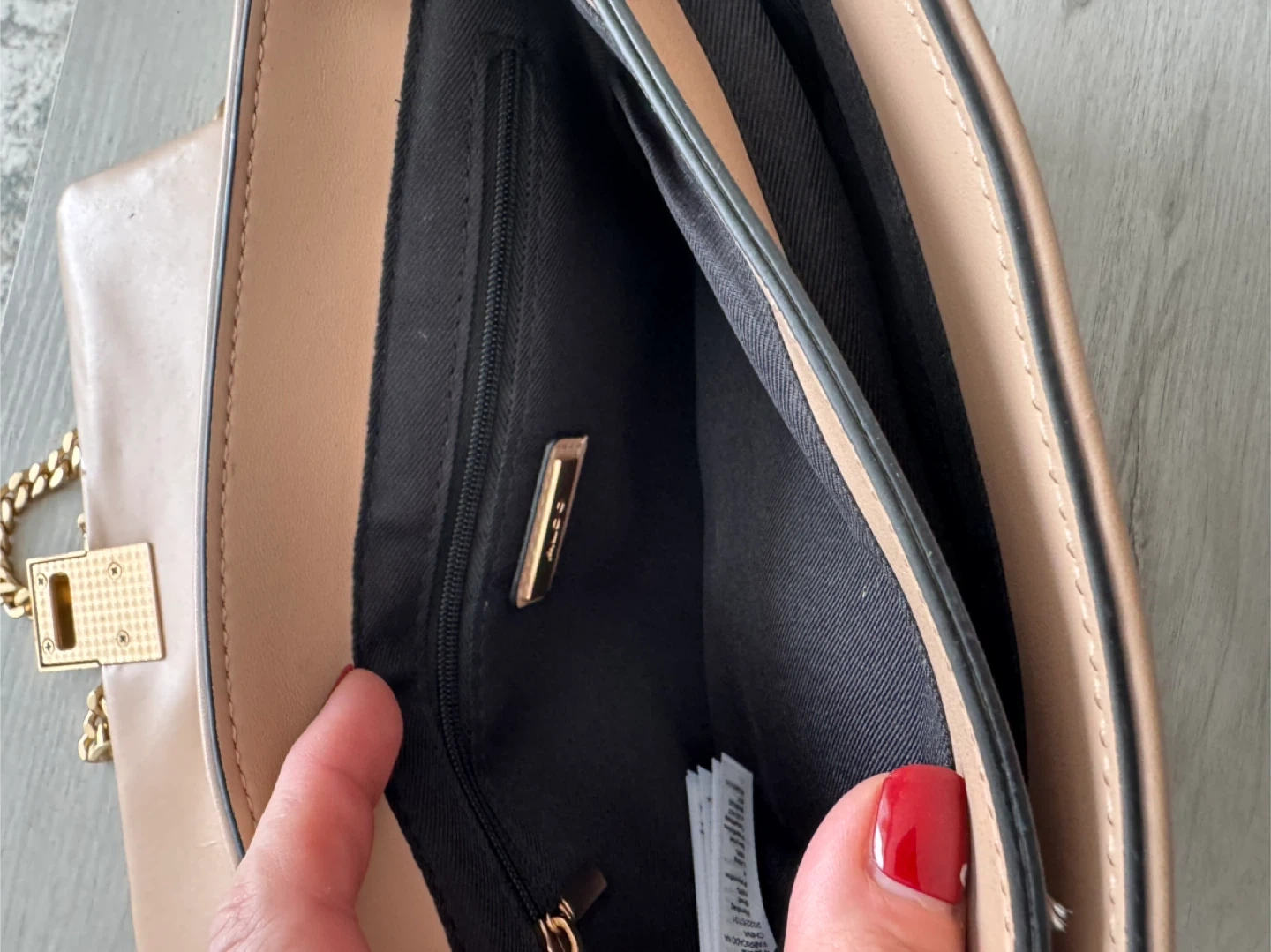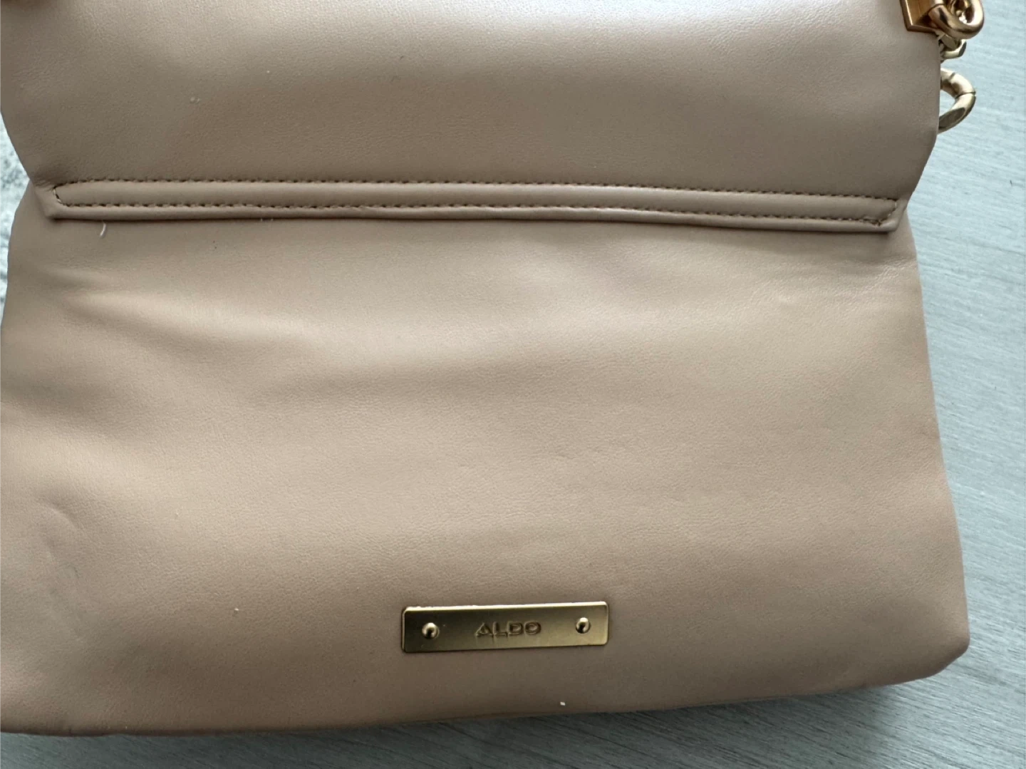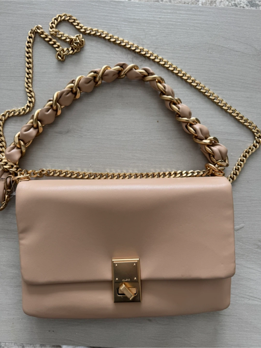 Selling a stylish ALDO shoulder bag in a lovely beige colour! It features a chic gold chain detail that adds a touch of elegance. The bag is in great condition and perfect for everyday use or a night out. Inside, there's a convenient zipper pocket to keep your essentials secure. Pick up in Baxter
