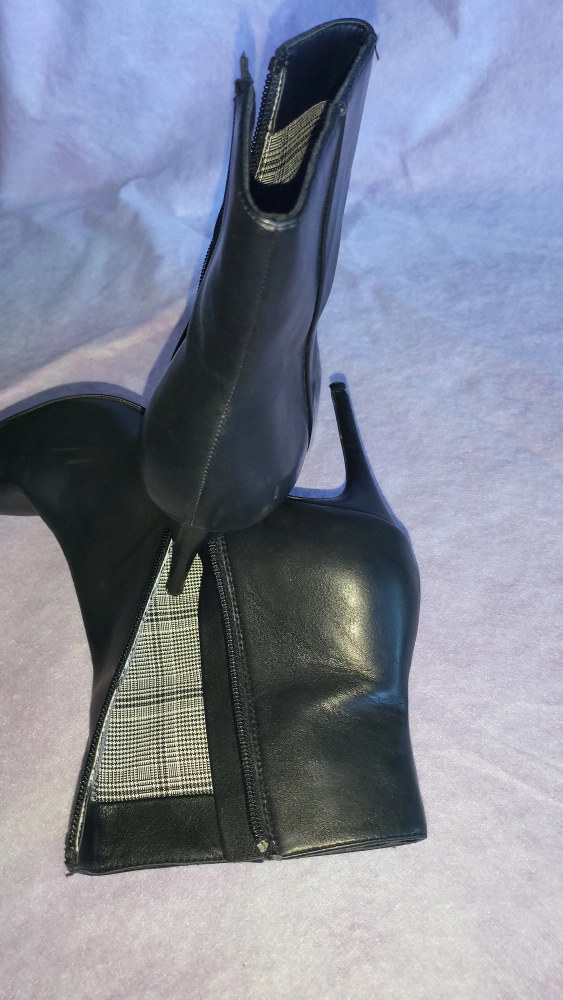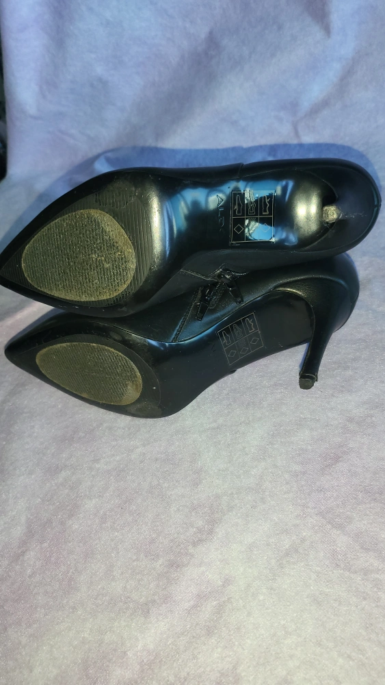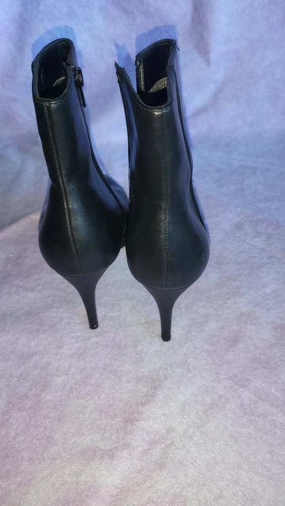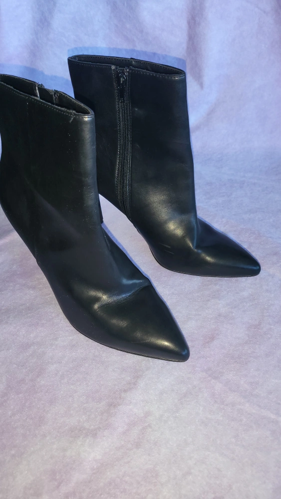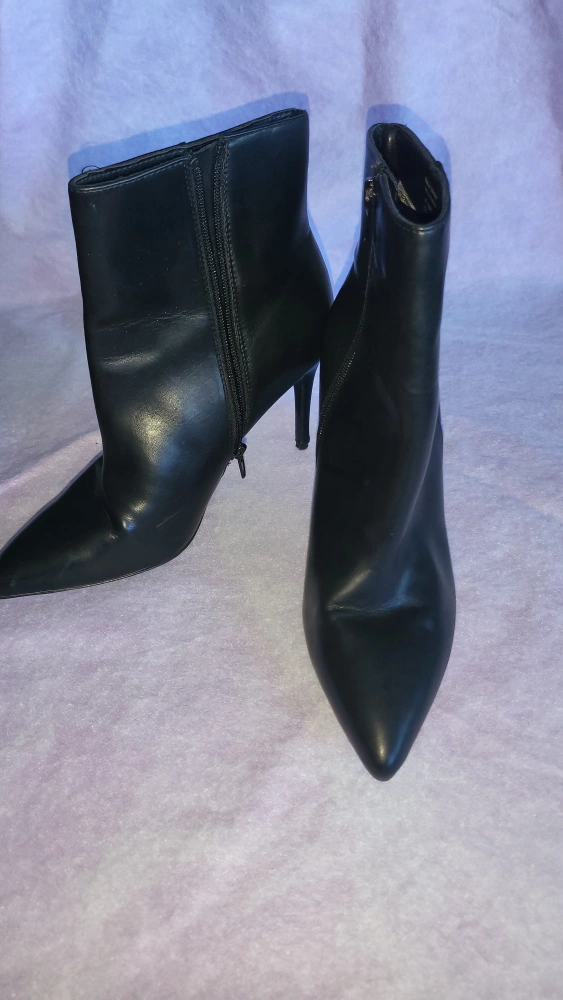 Selling a pair of Aldo black heeled ankle boots. They have a pointed toe and a zipper closure on the side. Shows some signs of wear on the soles but otherwise in good condition!