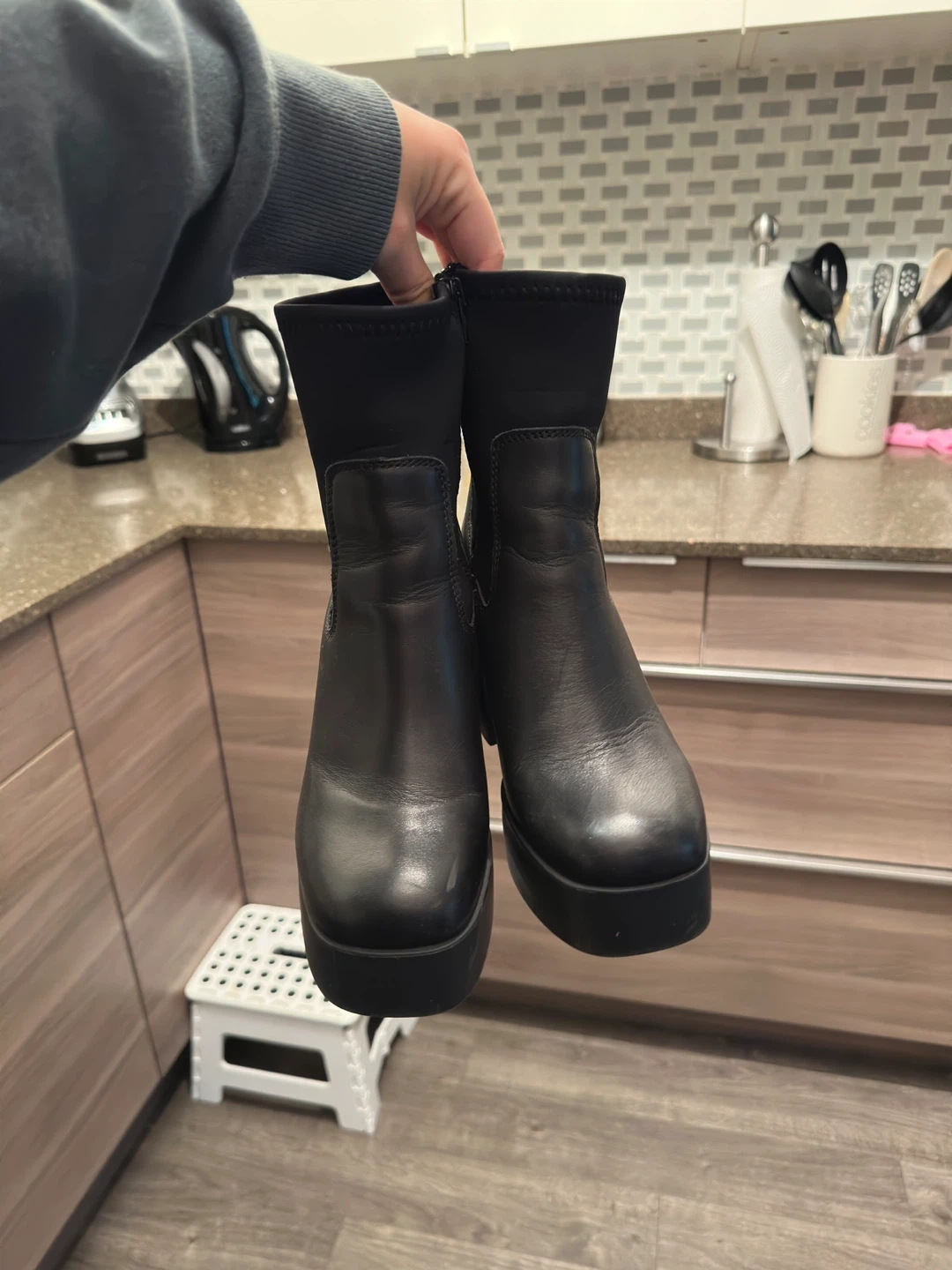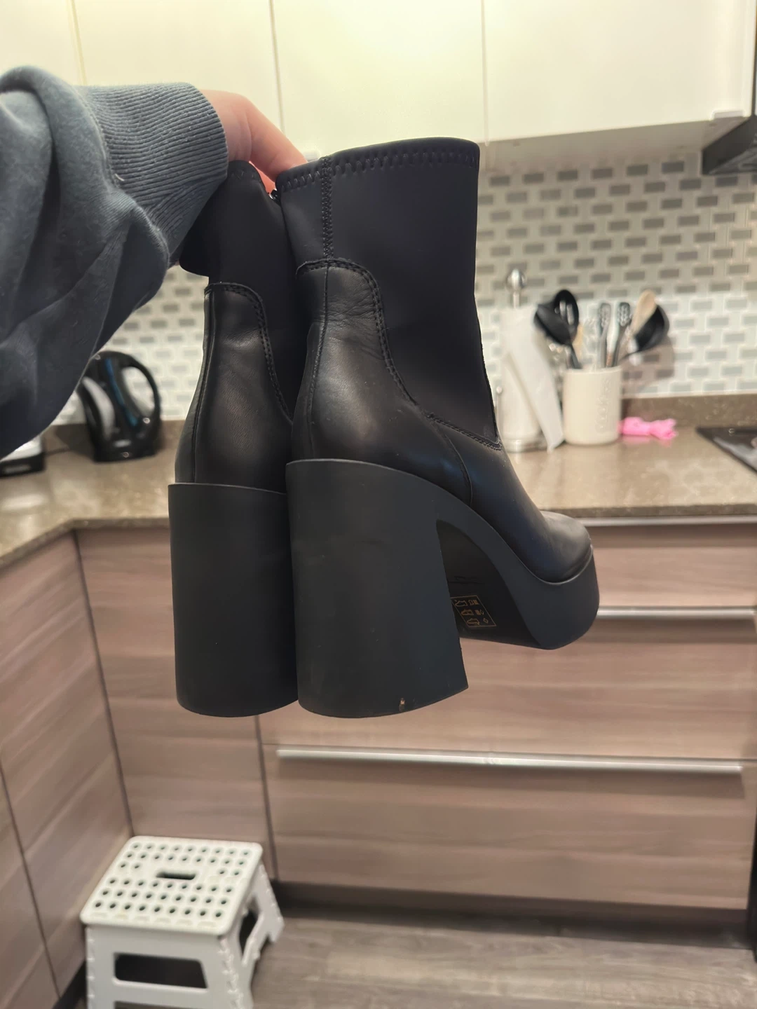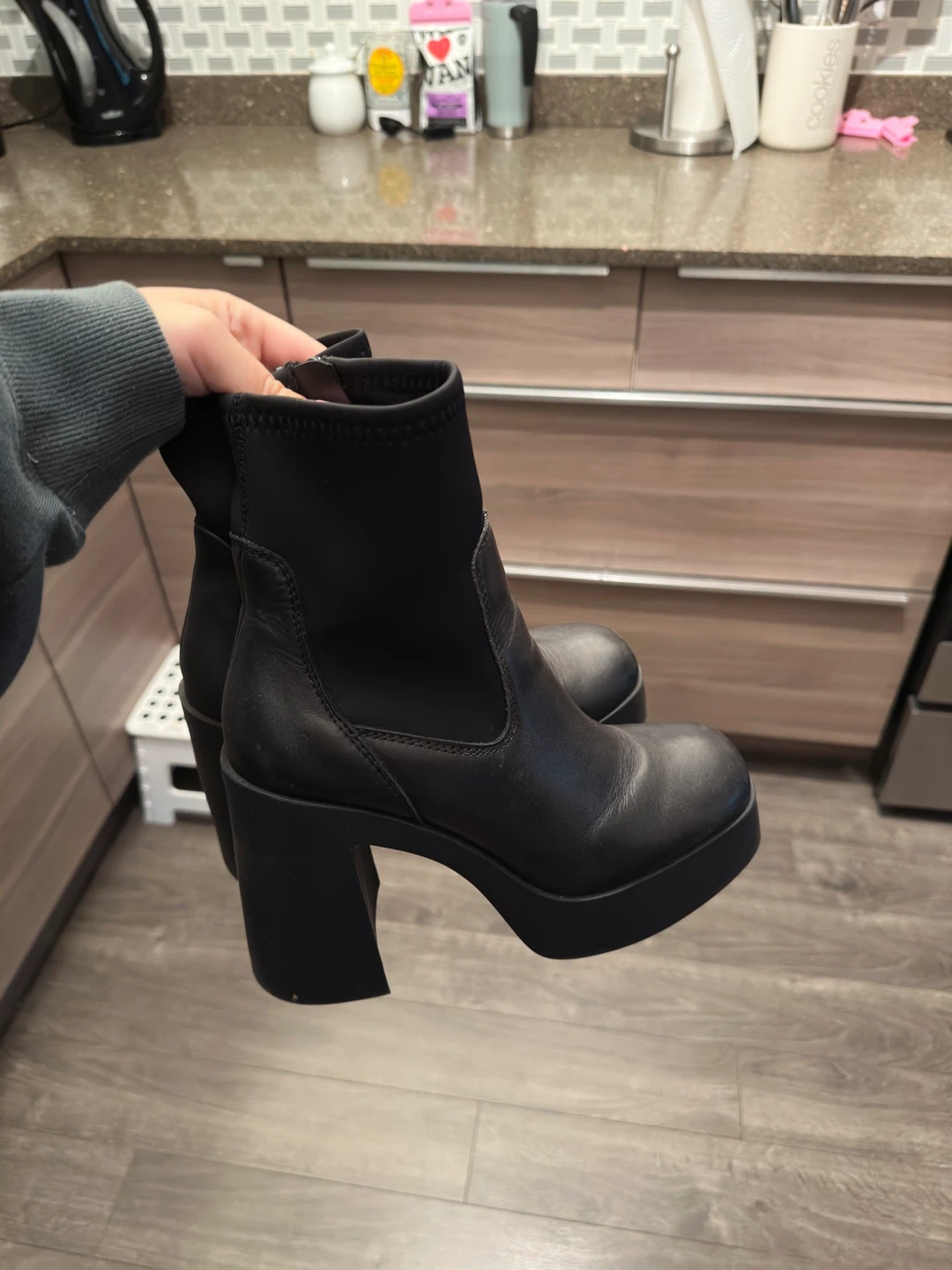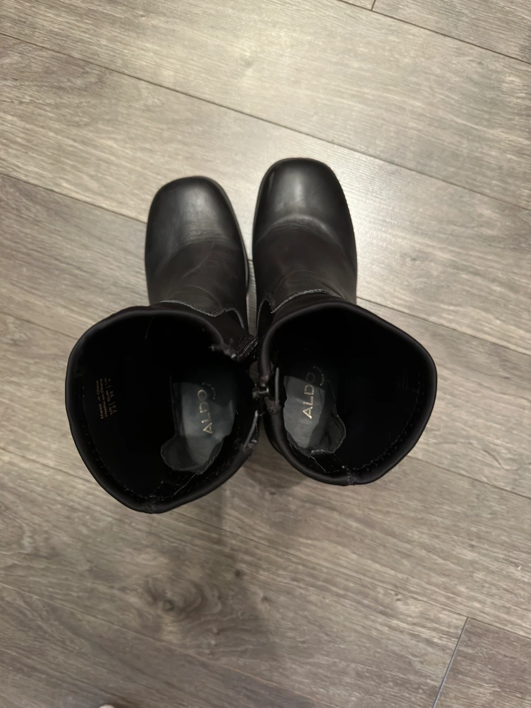 Selling a pair of Aldo black platform heel boots in size US 7.5. They're in great condition (only worn a couple of times) and ready for a new home! Stylish and comfortable, these boots are perfect for adding a bit of height and flair to your outfit