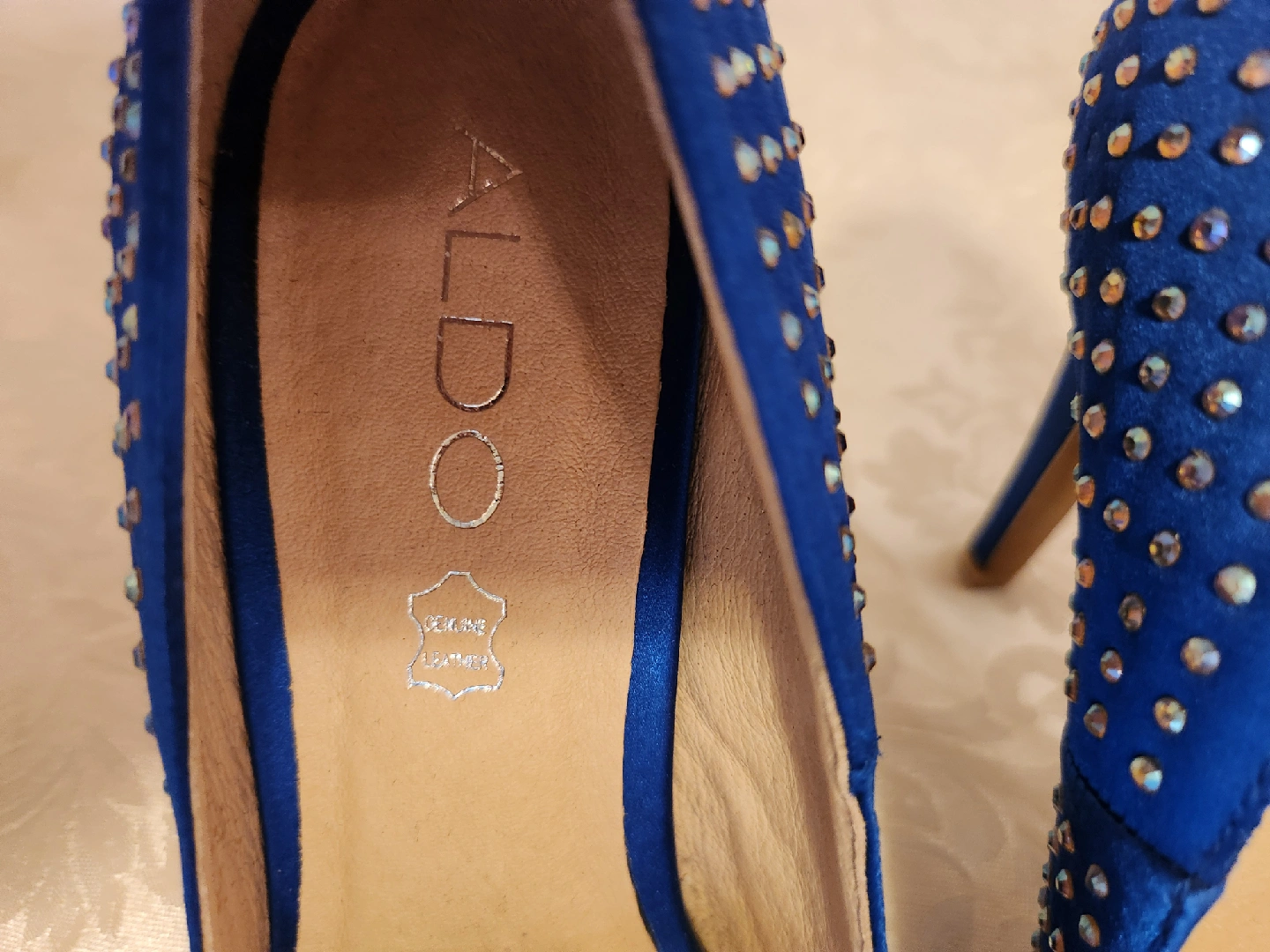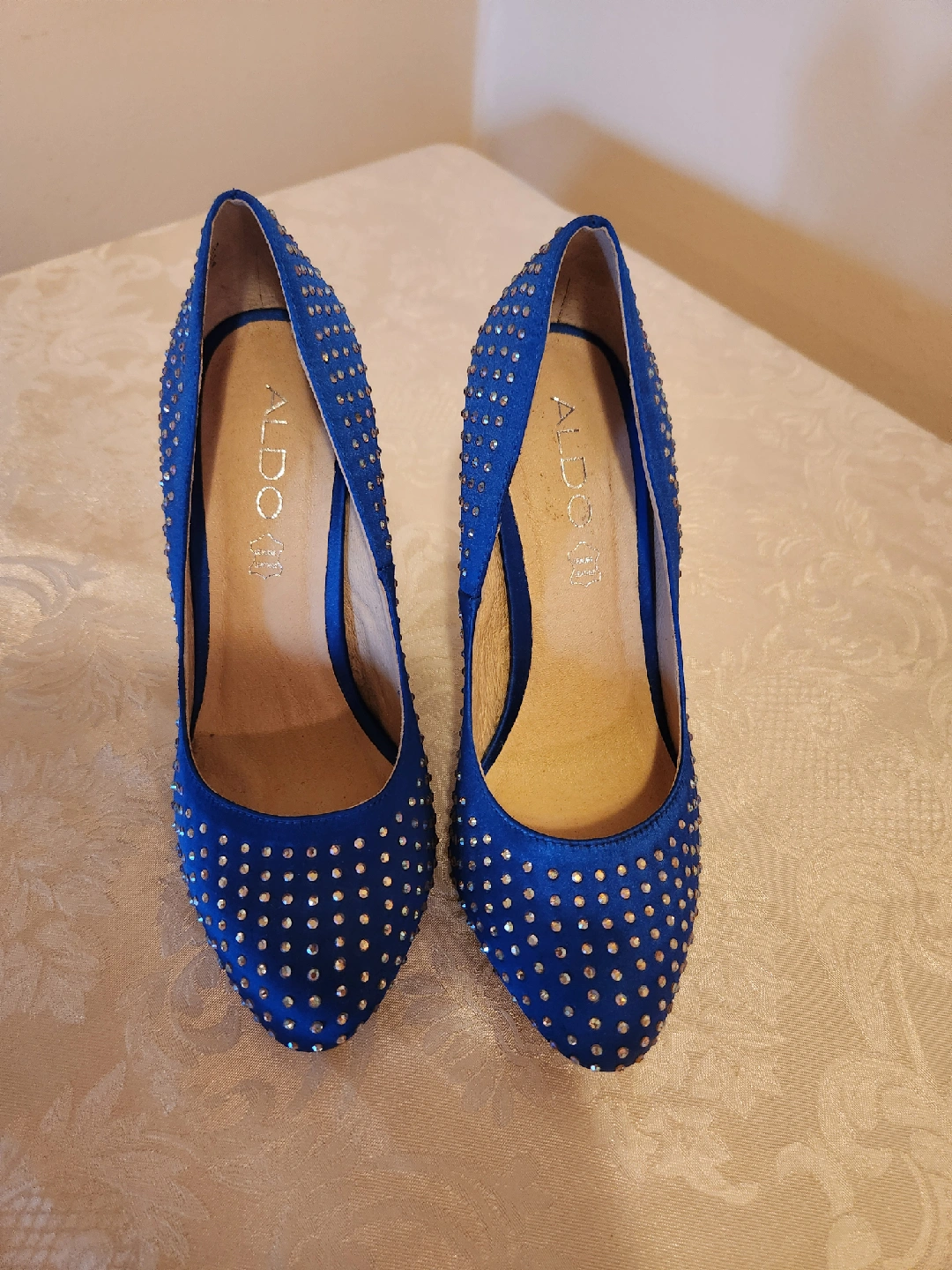 These eye-catching ALDO heels are sure to turn heads! They're a vibrant blue colour and feature dazzling embellishments. The size is 37 (European sizing). These are perfect for a night out or any special occasion!