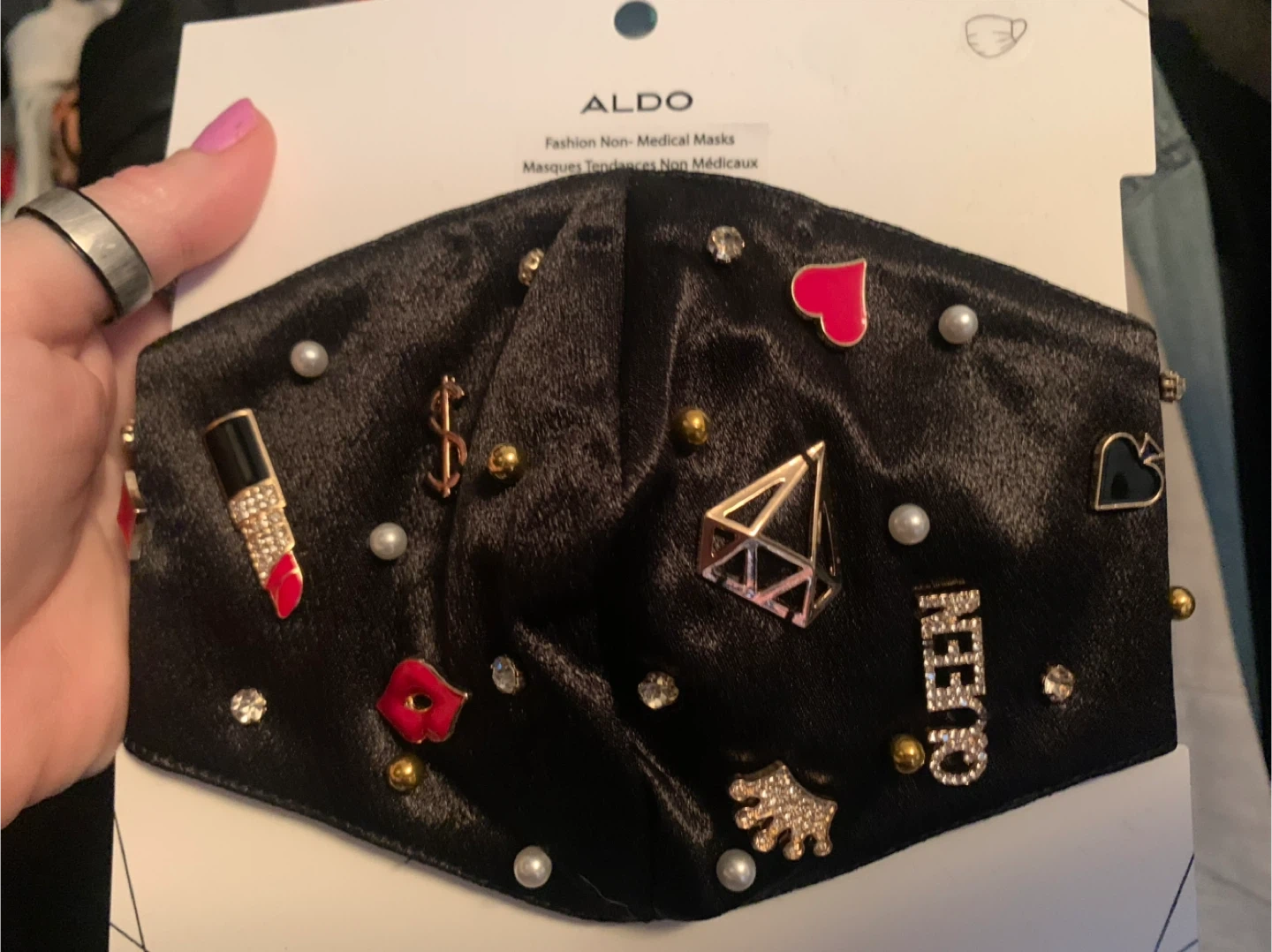 Selling an ALDO fashion face mask. It's a stylish non-medical mask with unique embellishments. Perfect for adding a bit of flair to your look!