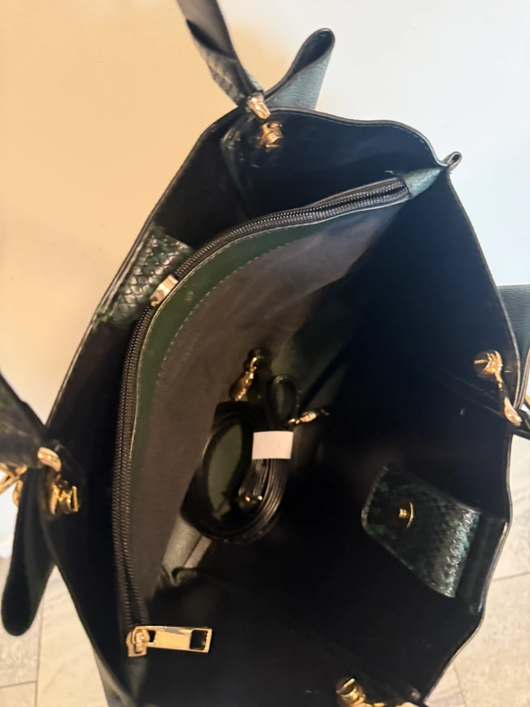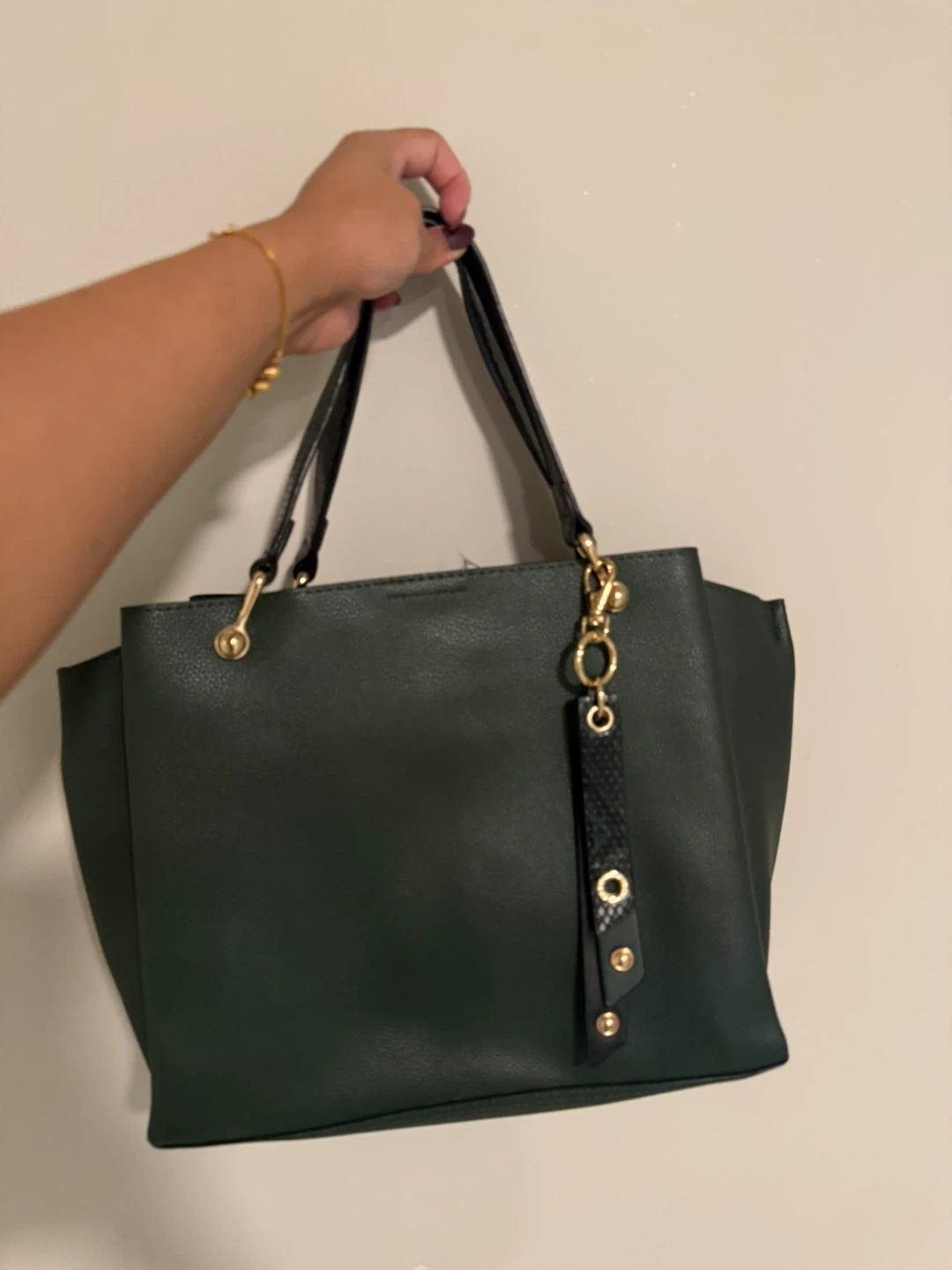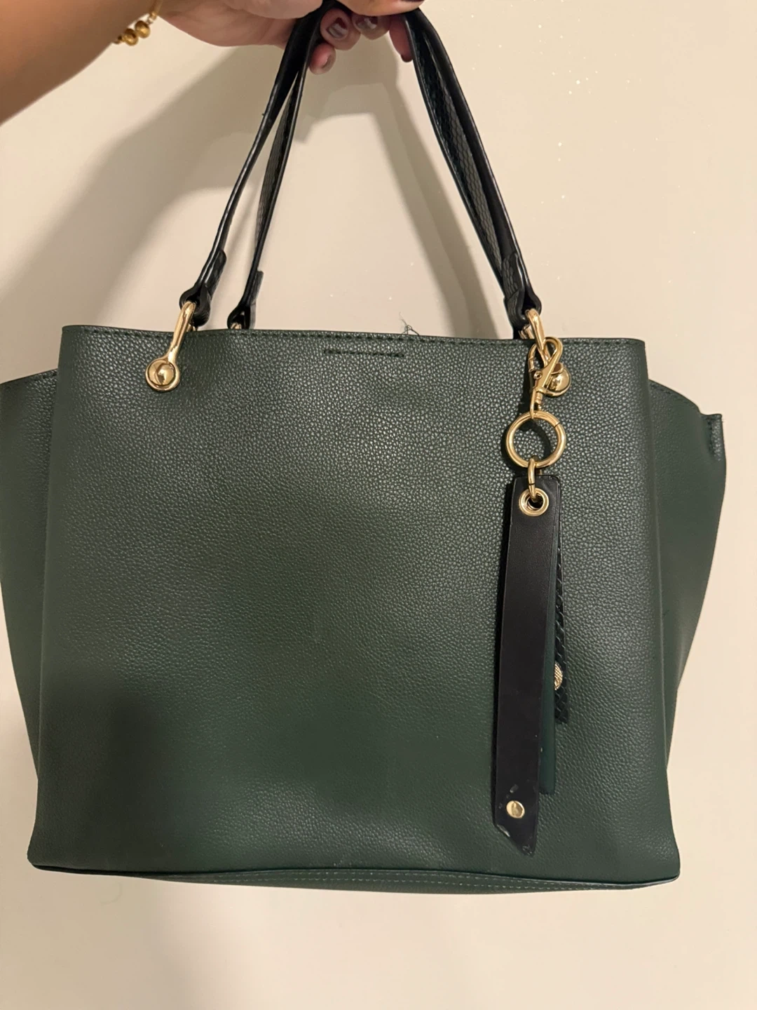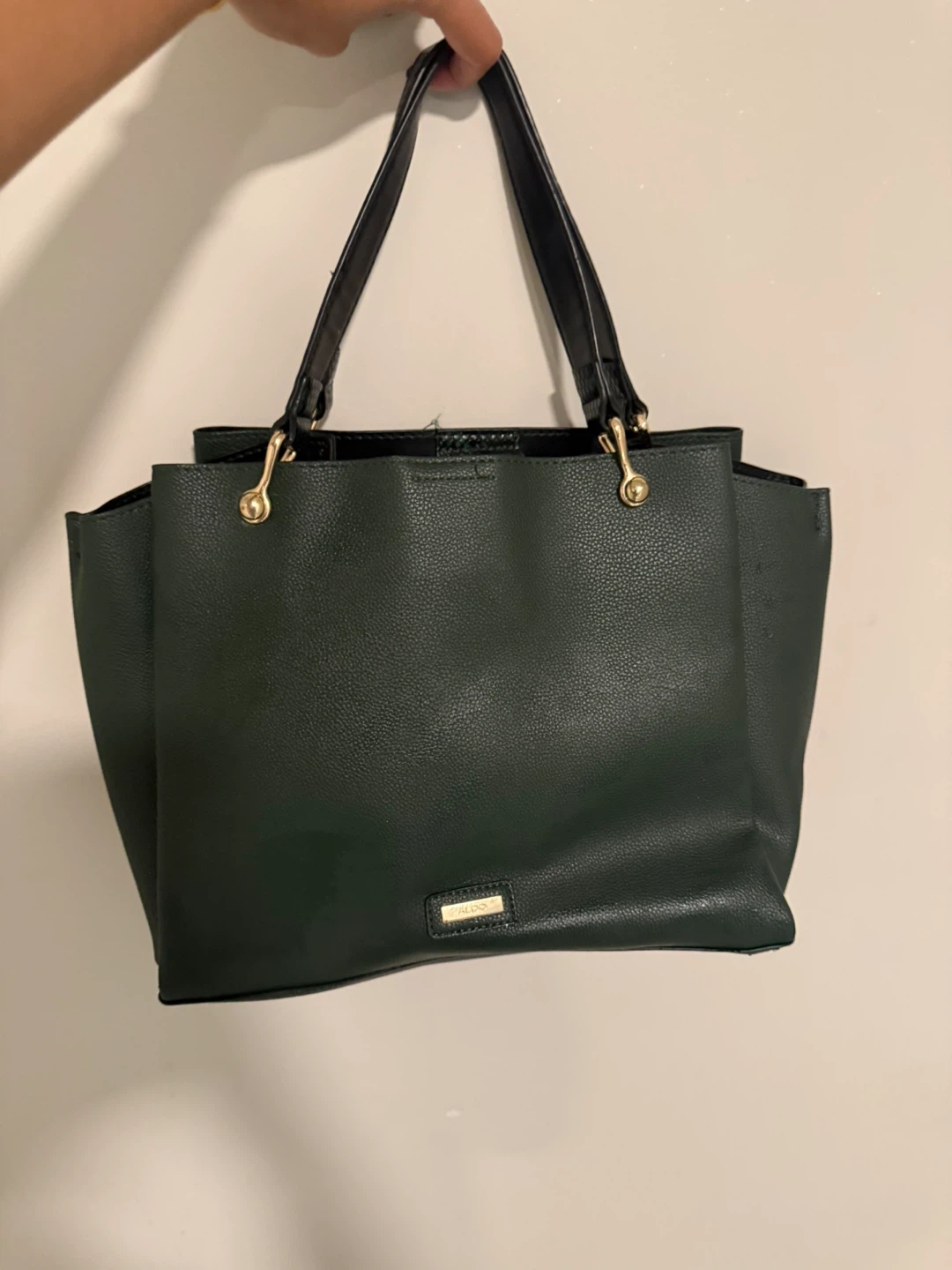 Selling a stylish ALDO tote bag in a beautiful green colour! It's in great condition and perfect for everyday use. The bag features black straps and gold hardware, adding a touch of elegance