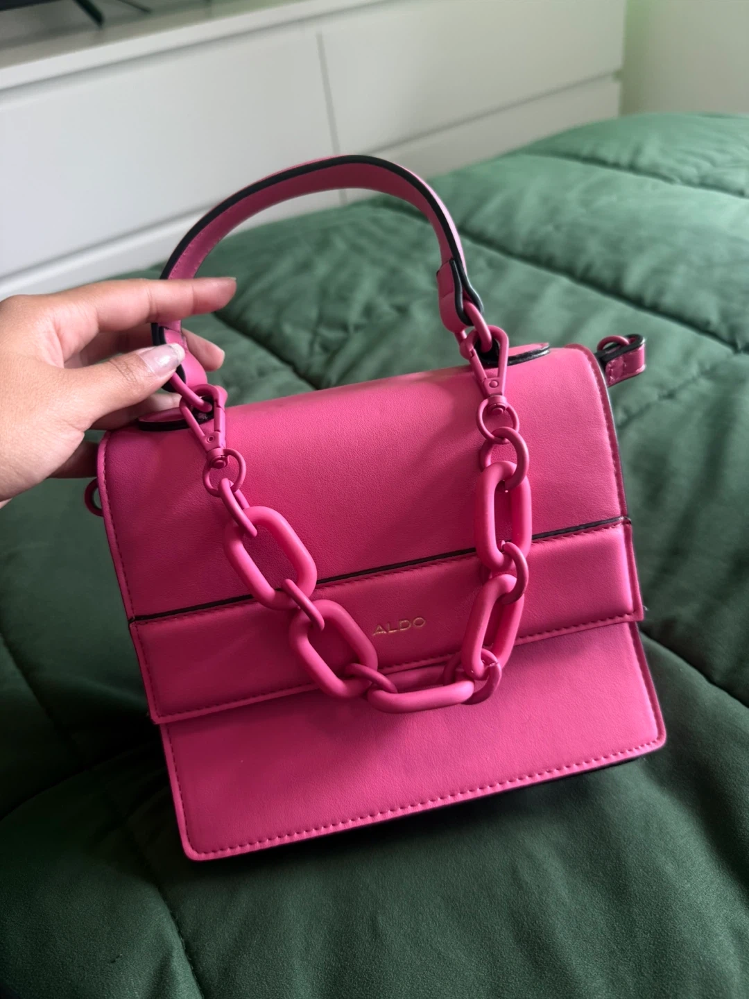 Selling a cute Aldo crossbody bag in a vibrant pink colour! It's perfect for adding a pop of colour to any outfit. The bag features a stylish chain detail and is in great condition. A fashionable accessory for any occasion! - used once