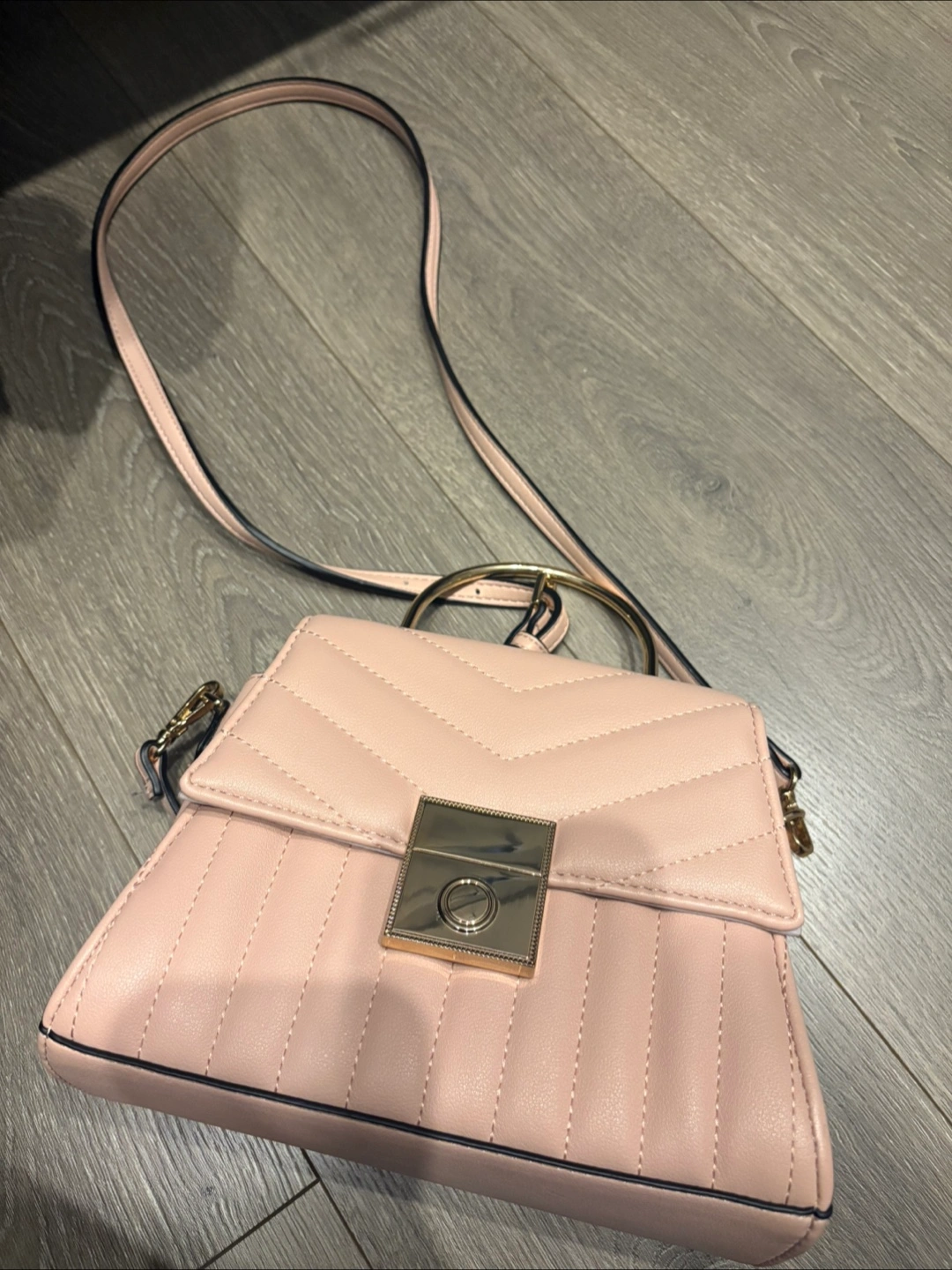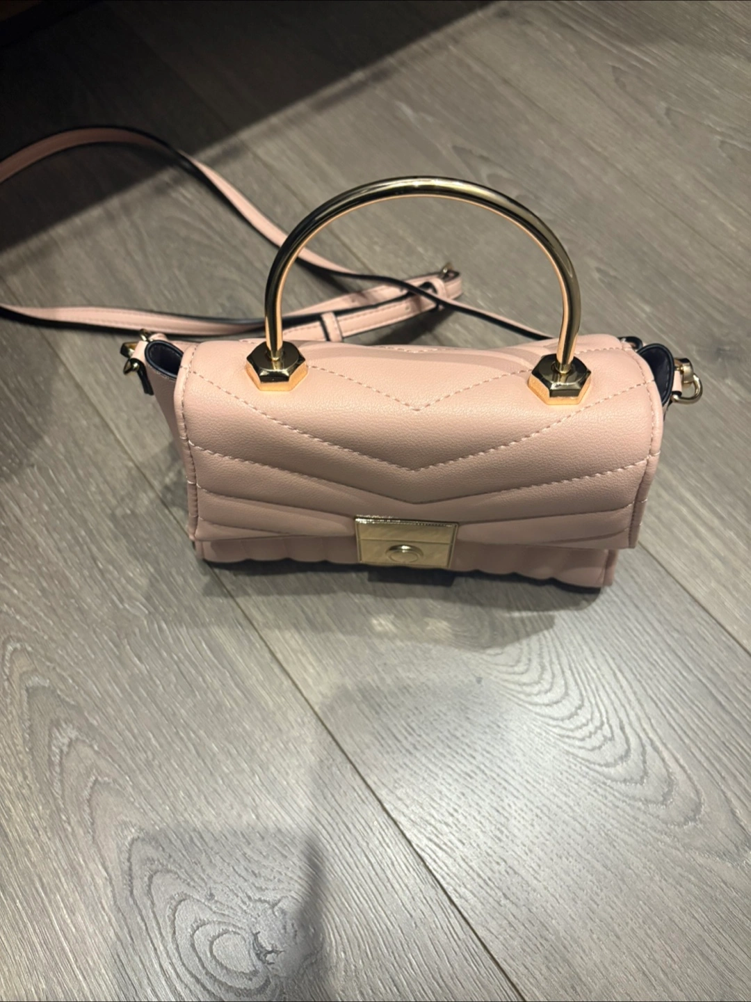 Selling a cute Aldo crossbody bag in a lovely pink colour. It's in great condition and perfect for everyday use or a night out. The bag features a stylish design with a gold-tone handle and hardware, adding a touch of elegance