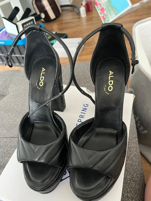 Selling a pair of ALDO platform heels in size 7. They are black and feature a quilted design on the platform and heel. Perfect for a night out!