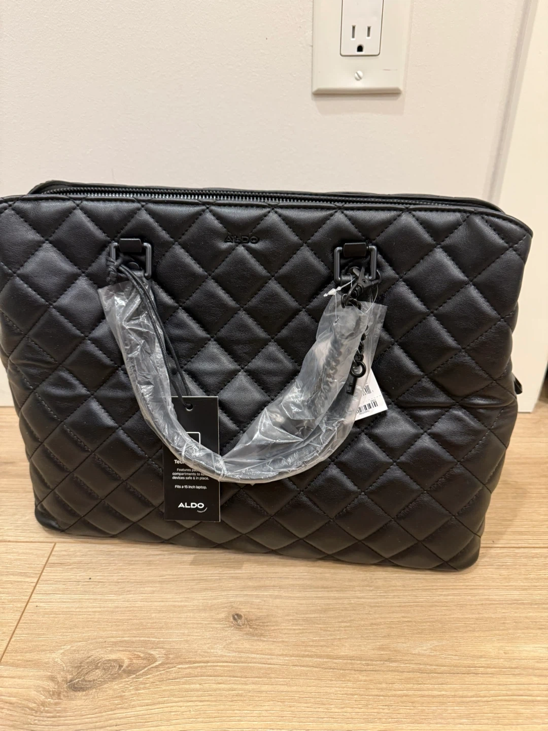 Selling a stylish black quilted handbag from ALDO. It's in great condition and perfect for everyday use. The bag features a quilted design and a spacious interior. The material is durable and easy to clean!