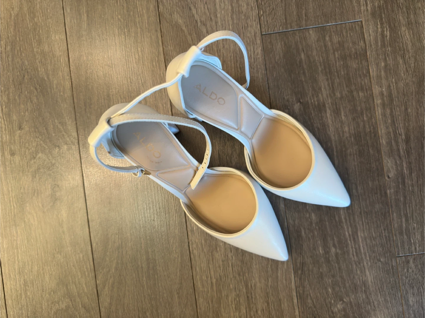 Selling a pair of Aldo heels in white, size US 7. They're in great condition and ready for a new home! The perfect addition to your wardrobe for a night out or special occasion