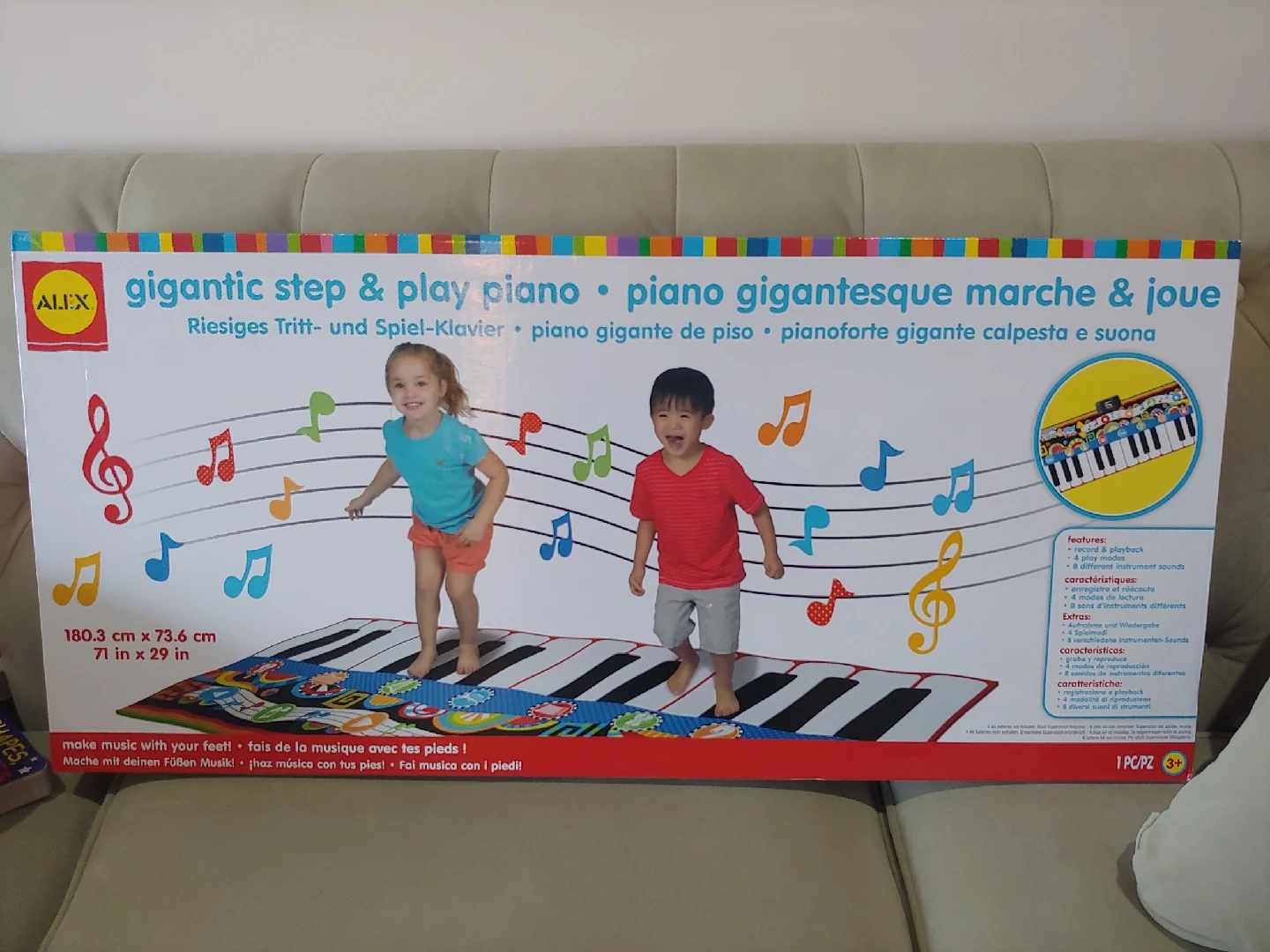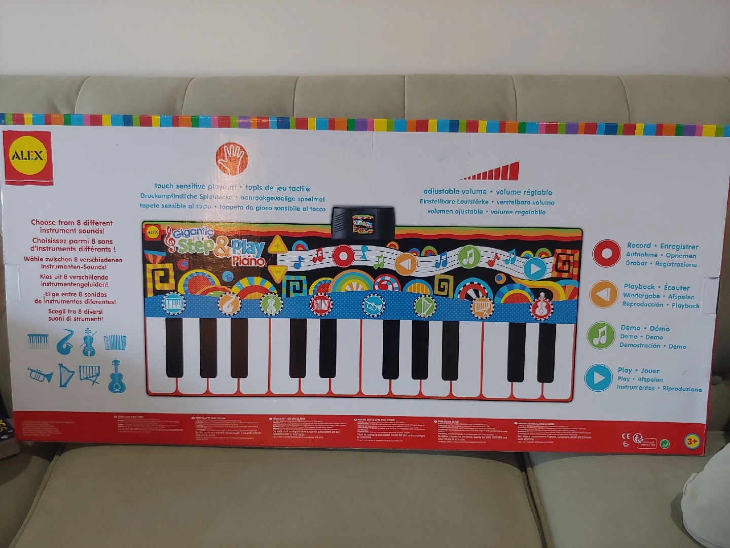 Get ready to make some music with this brand new ALEX Gigantic Step & Play Piano! It's still in its original box. It features: - 4 play modes - 8 different instrument sounds Dimensions: 180.3 cm x 73.6 cm (71 in x 29 in)