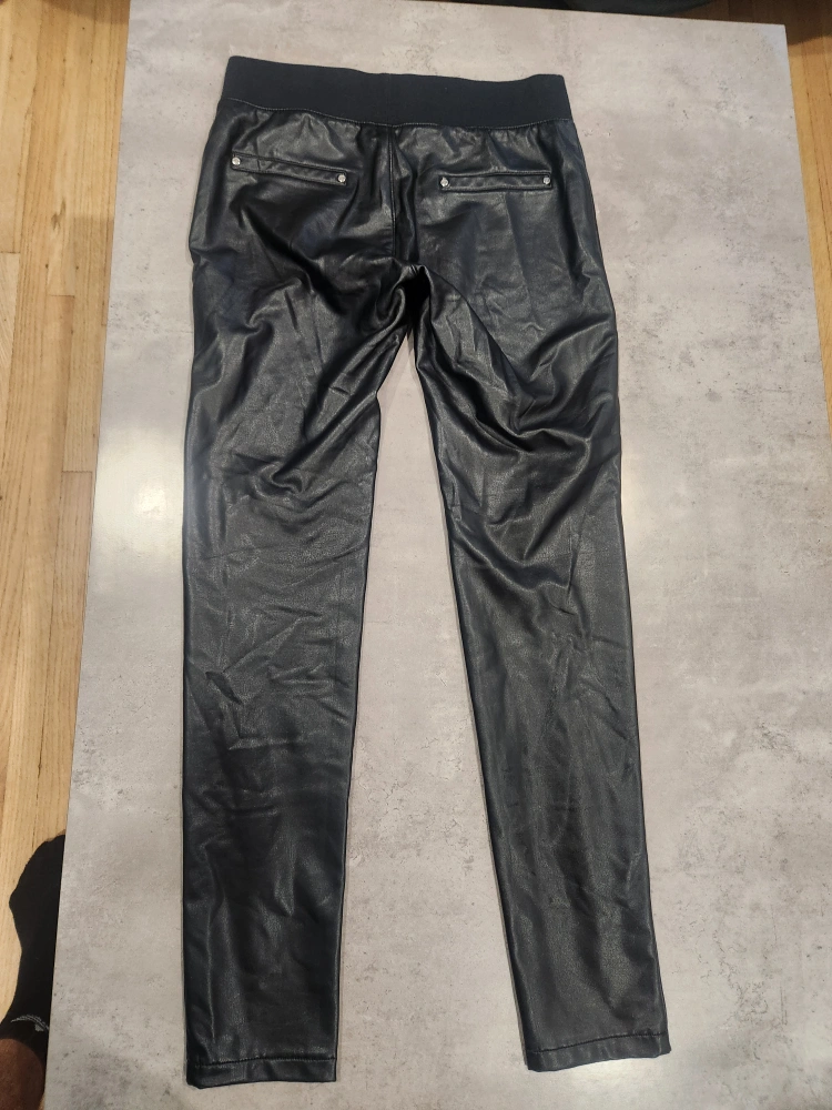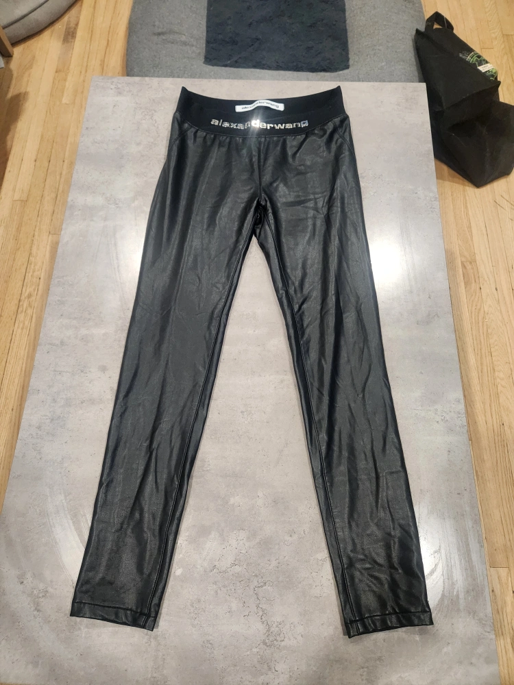 Selling a pair of Alexander Wang faux leather pants in black. The size is 29/30. They're made of 98% cotton and 2% lycra.