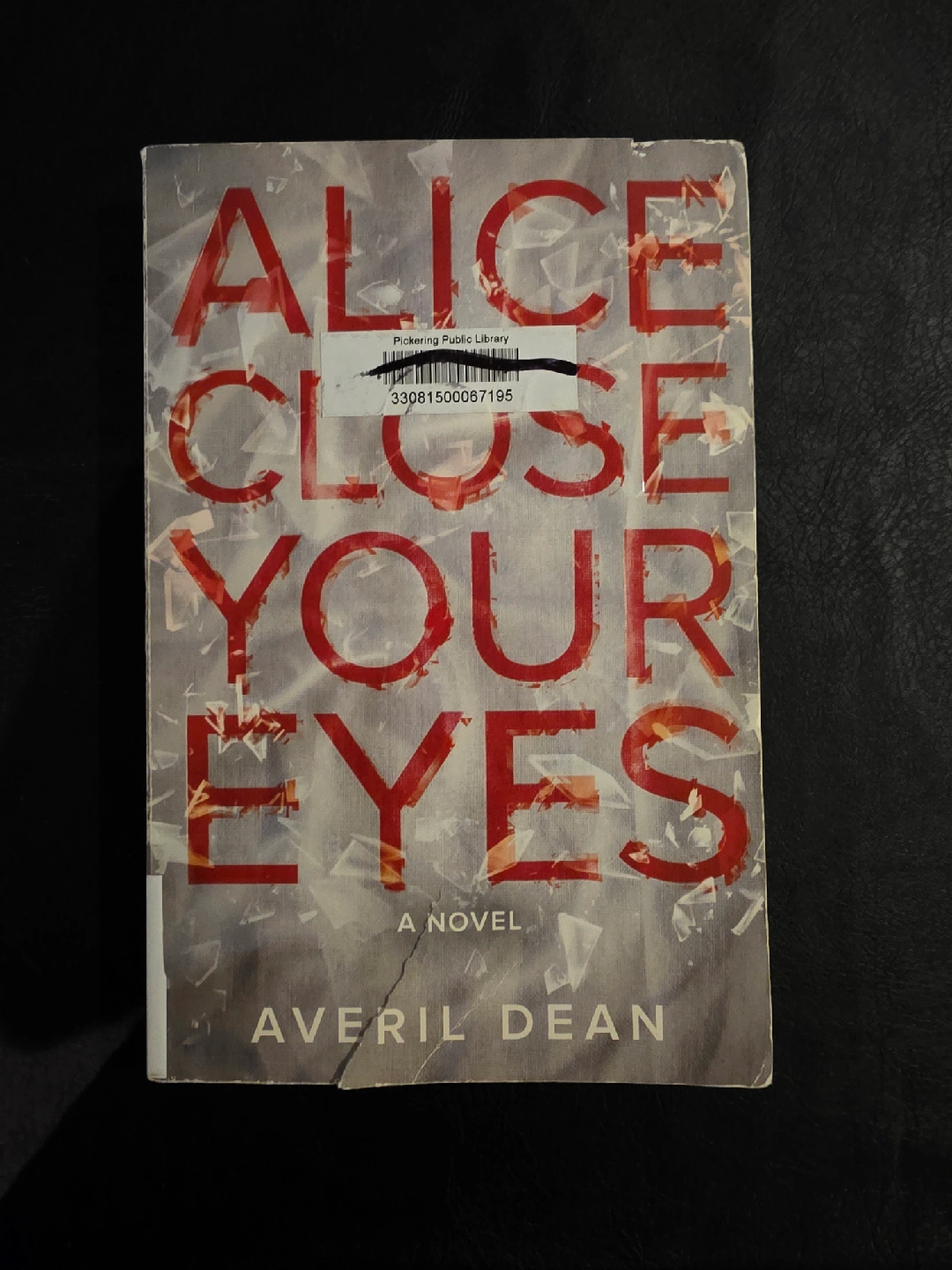 Selling the novel 'Alice Close Your Eyes' by Averil Dean. It's a captivating read!🧡