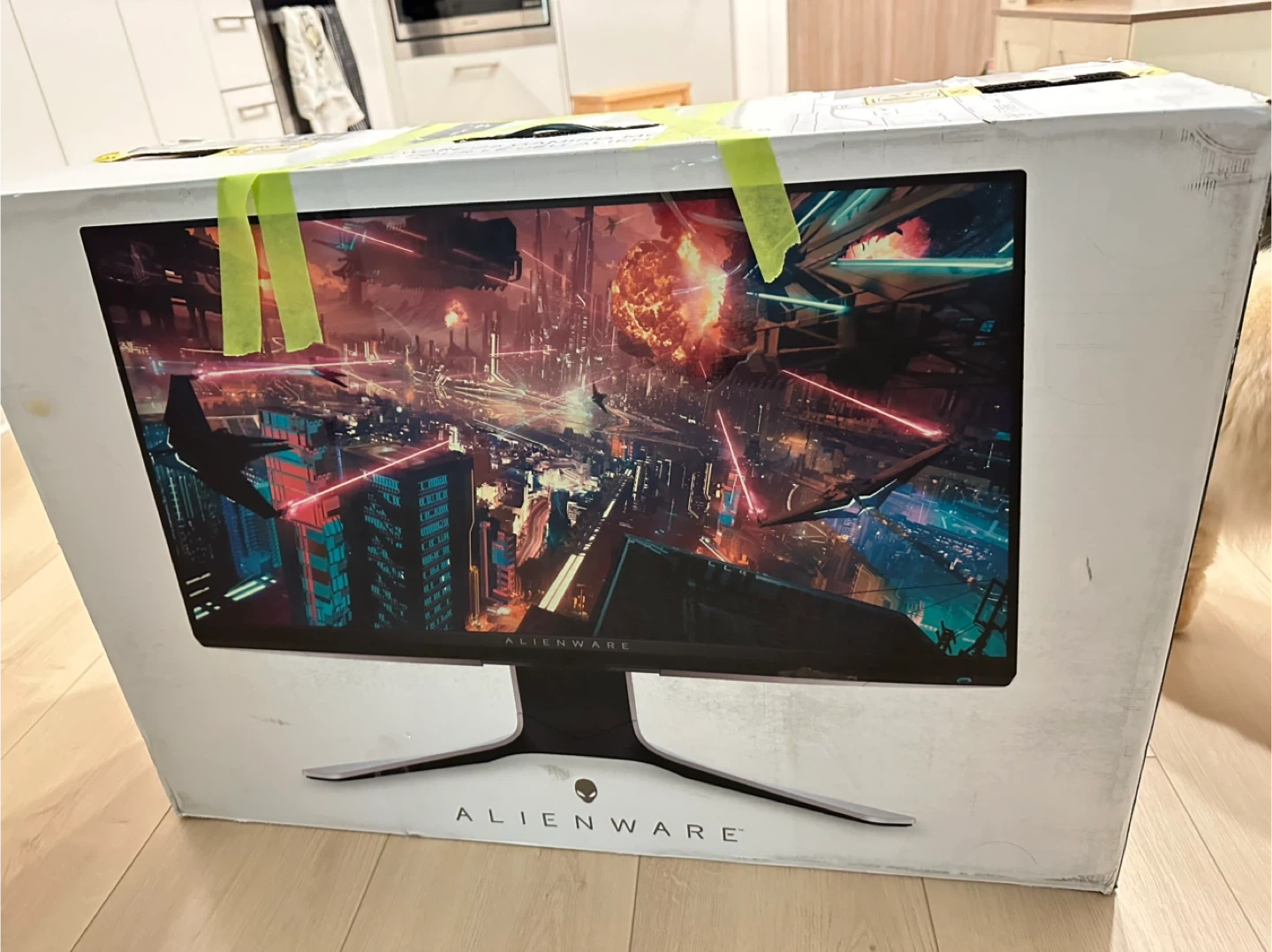 It comes with the original box. Has tiny scratch on the left bottom corner of the screen but not visible when using. Free-Sync,G-SYNC compatible 240Hz, 1ms