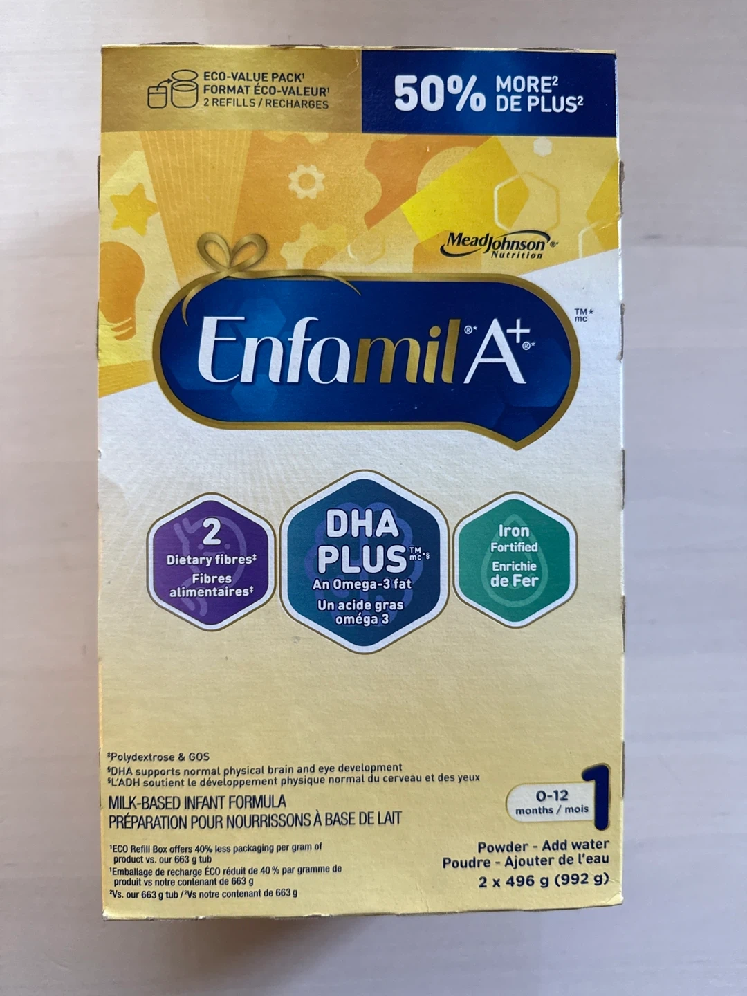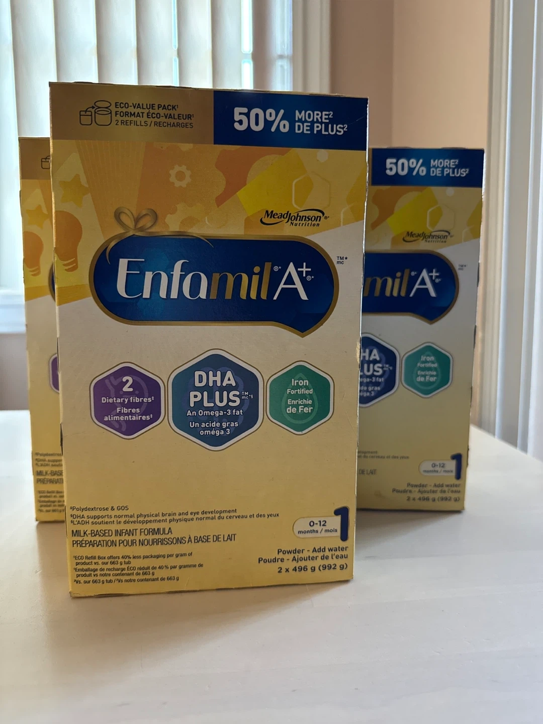 Selling three boxes of Enfamil A+ infant formula. Each box contains 2 x 496 g (992 g) of powder. Expiry date: 2026 October 01 Suitable for babies aged 0-12 months/mois. Each box contains: - 2 Dietary fibres - DHA PLUS An Omega-3 fat - Iron Fortified Meet up and cash only Meet at Brentwood mall