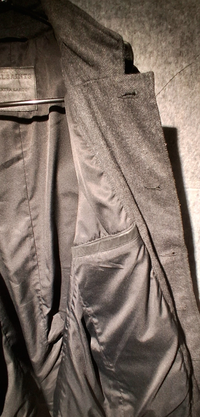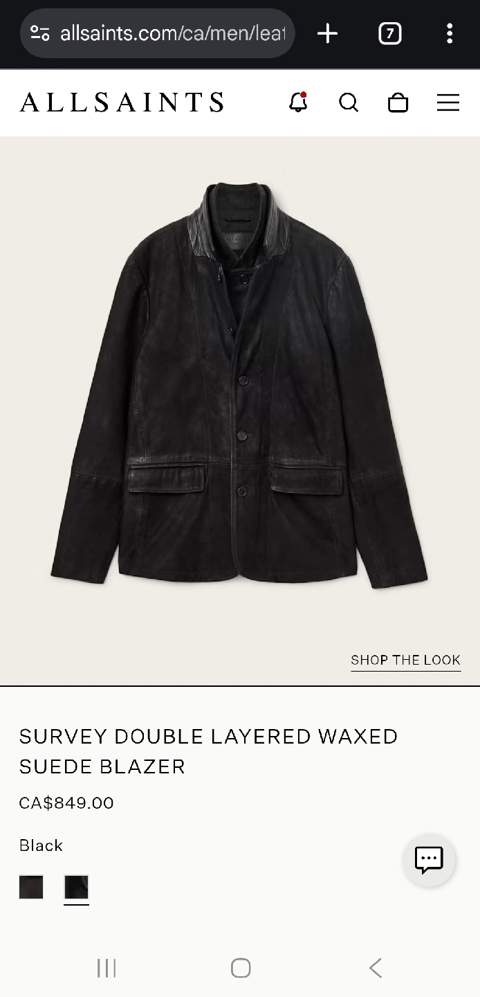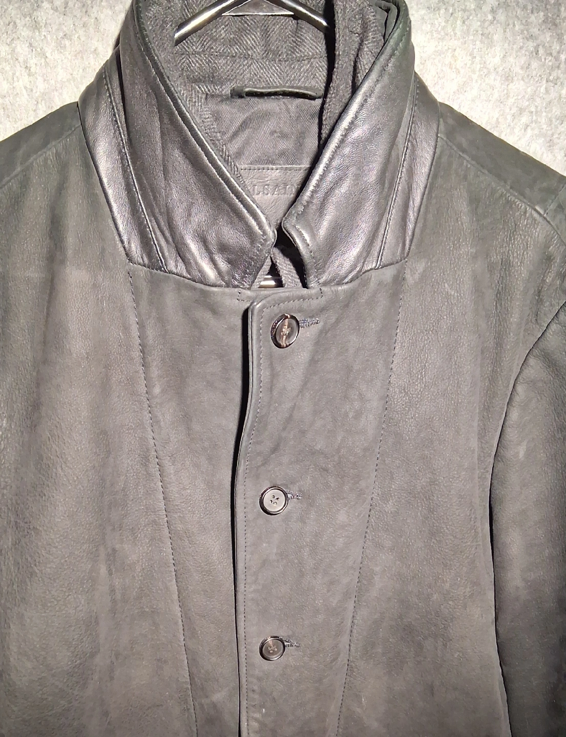 Selling an AllSaints Survey Double Layered Waxed Suede Blazer in size extra large. This blazer is black and made of suede. Retails for $849.00