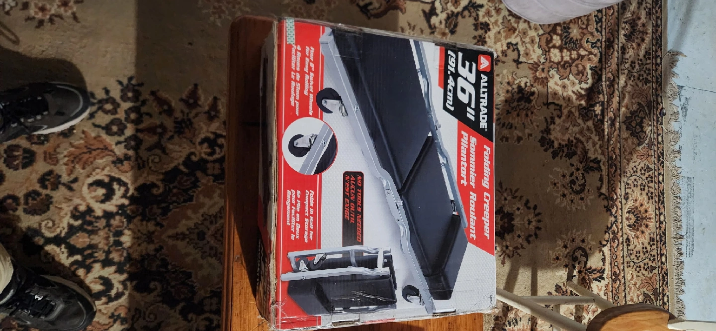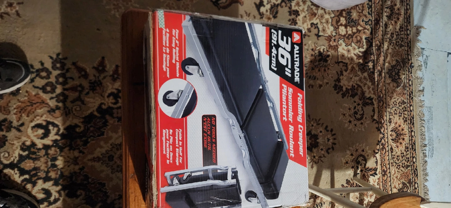 Selling an Alltrade 36-inch Folding Creeper still in its original box! It's perfect for working in tight spaces and folds up for easy storage. A great addition to any garage or workshop