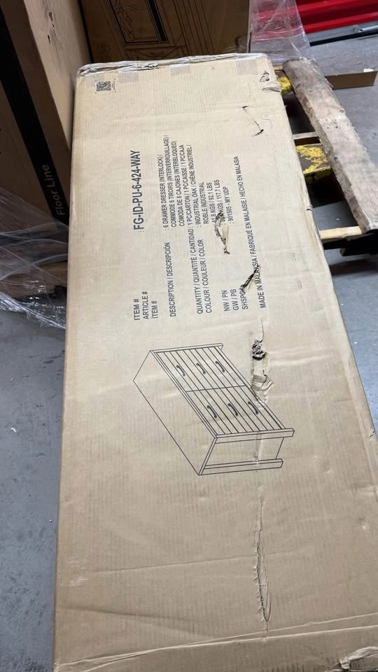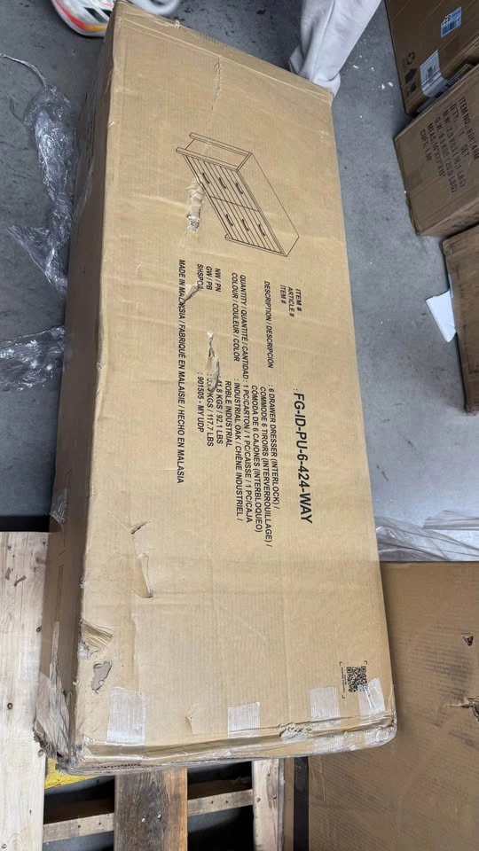 Whether as a focal point in the bedroom or a stylish storage solution in the living room, this dresser promises to enhance your decor with its modern charm. Experience the perfect balance of style and functionality with the interlock 6-Drawer Dresser Features Ample storage Sleek design Each equipped with sleek handles for easy access. Durable: Made with high-quality material, built to last. Condition: New in box Size : Check images Pickup: SmartStop, 2055 Cornwall Rd, Oakville, ON L6J7S2 Cash only! A stylish and functional upgrade for your home!