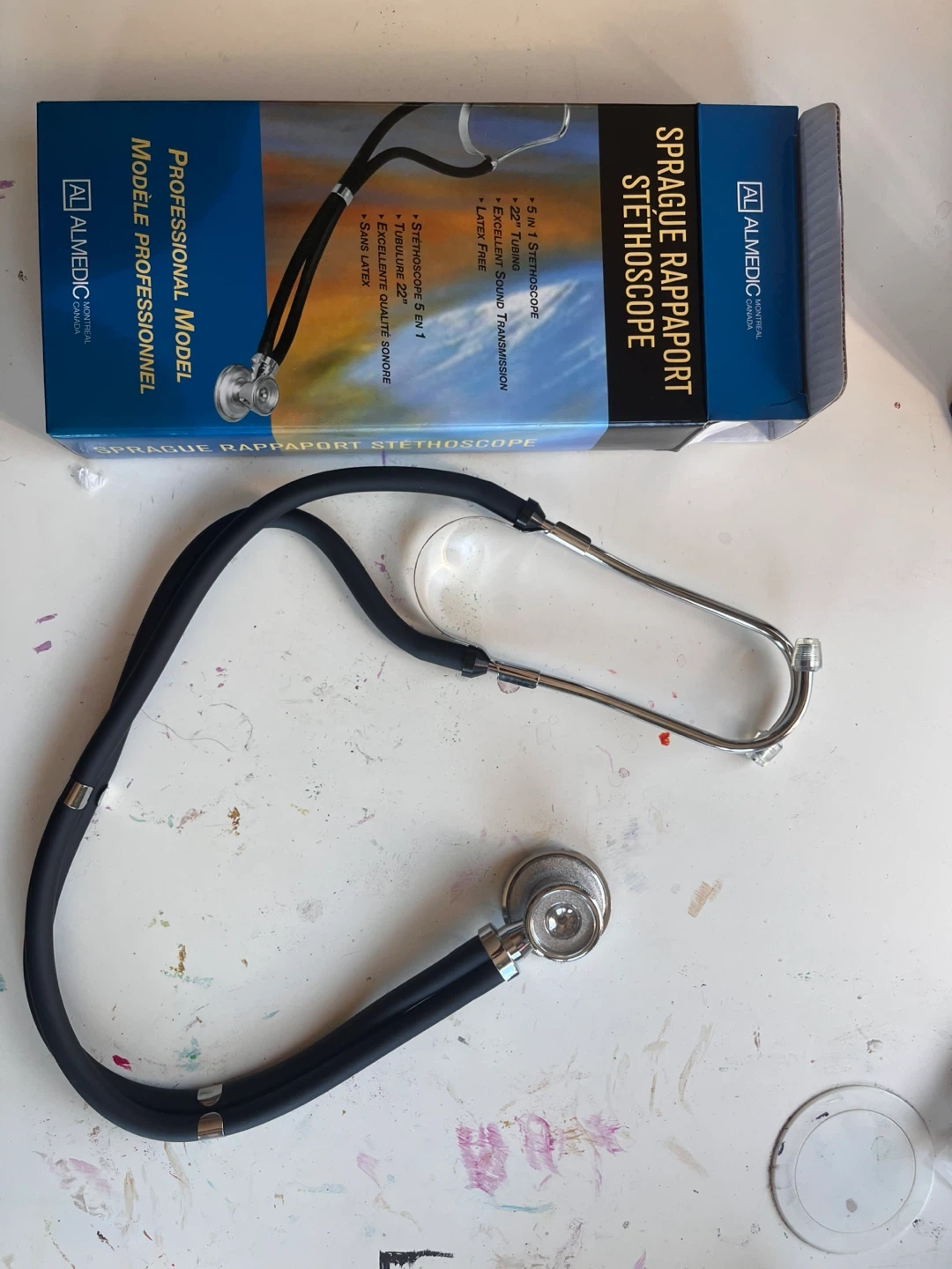 Selling an Almedic Sprague Rappaport stethoscope. It comes with its original box and features: - 5 in 1 stethoscope - 22" tubing - Excellent sound transmission - Latex free