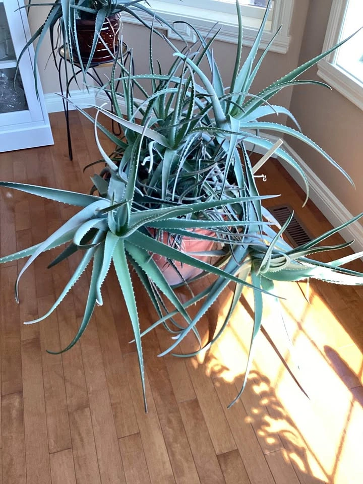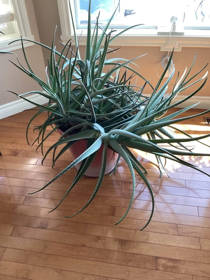 47” tall and 54” wide plant at widest points. Plant pot alone was over $60, has pads underneath so easy to move around and won’t scratch floor. Many large and baby plants, very healthy! No smoking home. Asking $125 obo. (Watering Ball not included)
