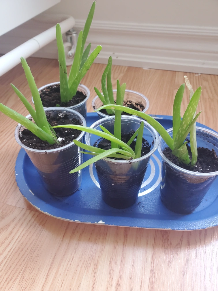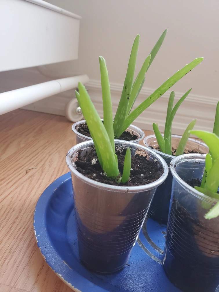 I have several small aloe vera plants for sale, each in its own plastic cup ready to go to a new home! They're easy to care for and great for burns and skin irritations