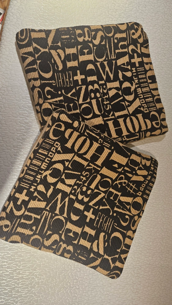 Selling a set of two throw pillow covers with a unique alphabet print. They're in great shape and would add a fun touch to any room! Made of burlap. Fits 21x21 pillow.