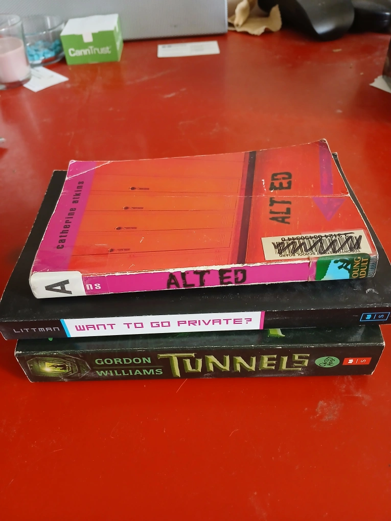 Selling a set of three books! Includes "Alt Ed" by Catherine Atkins, "Want to Go Private?" by Littman, and "Tunnels" by Gordon Williams
