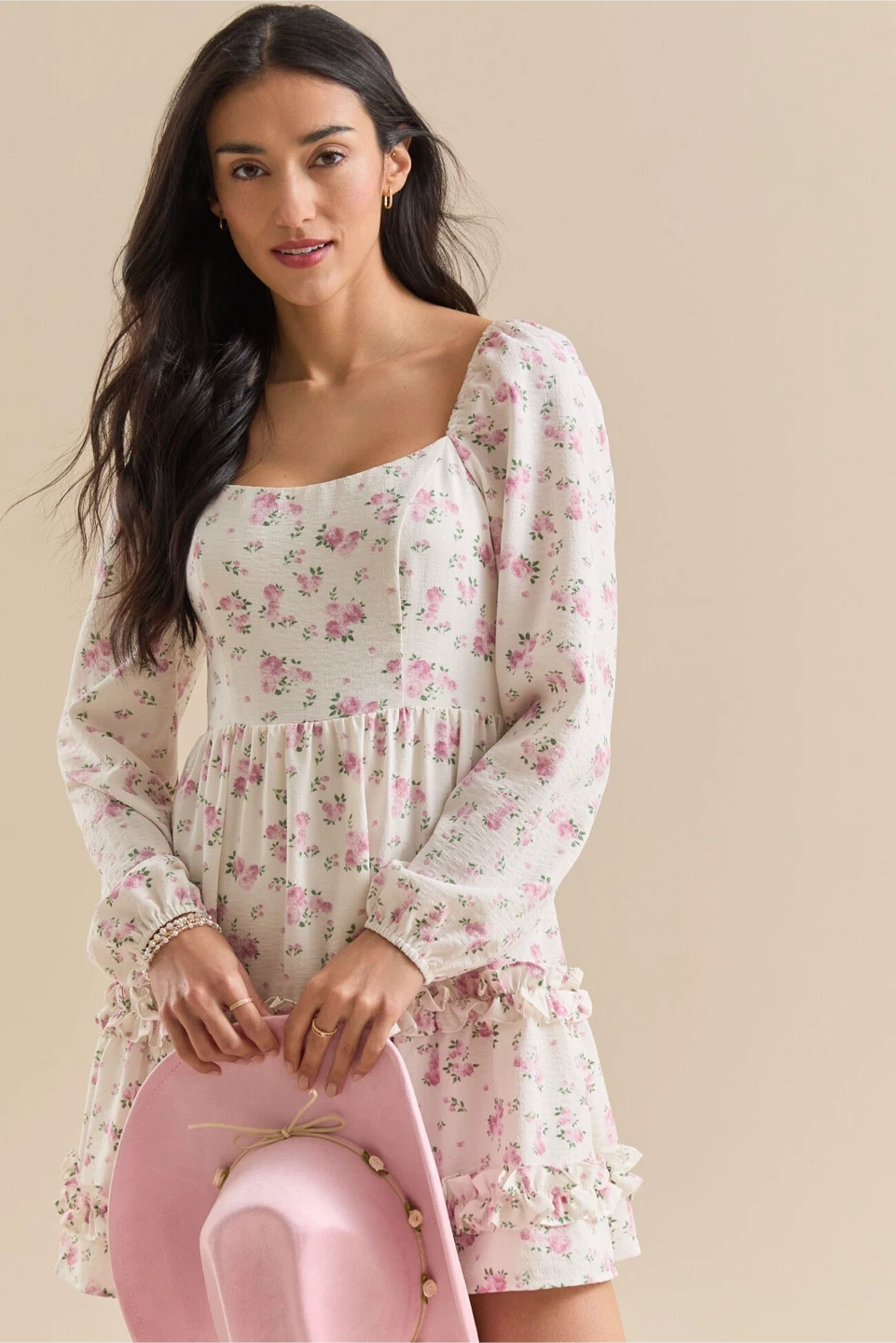 Altar’d State Rainbow Floral Sequin Puff Sleeve Dress