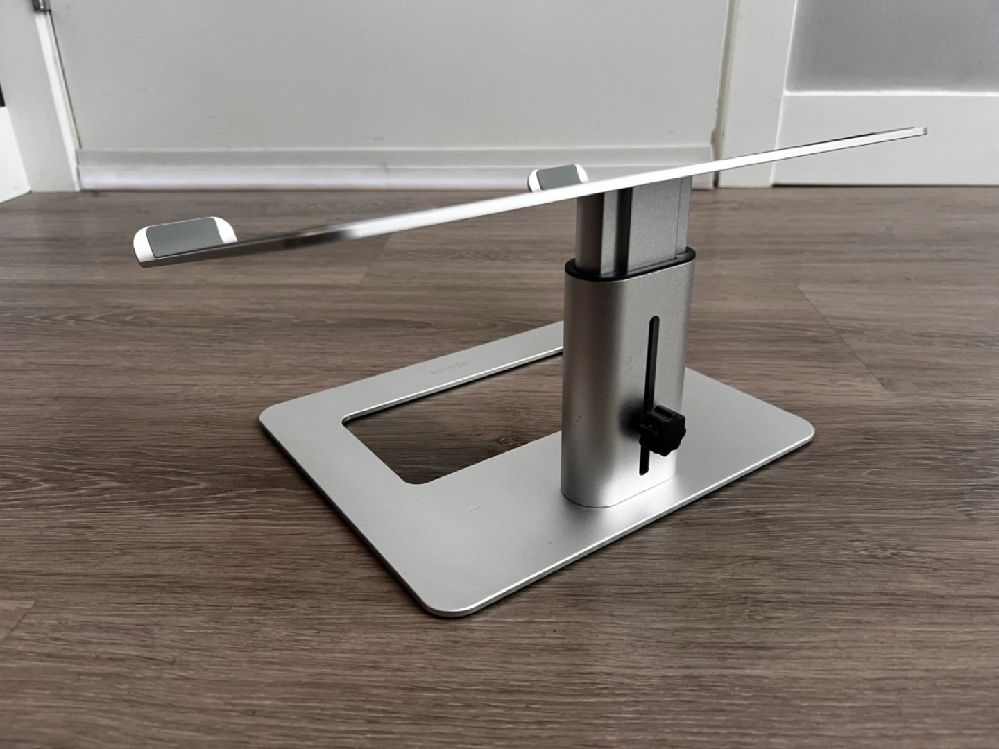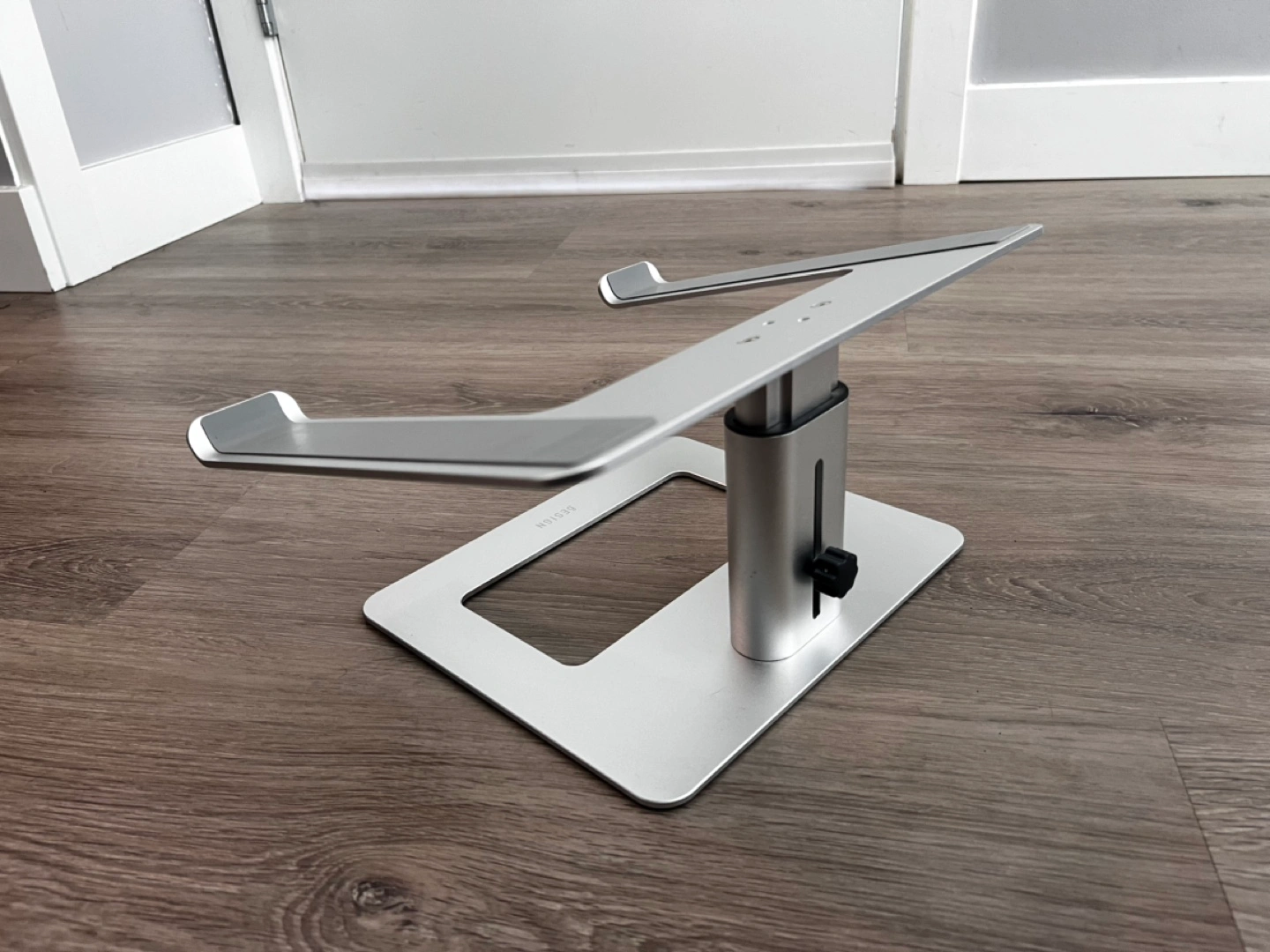 Ergonomic laptop riser. Adjustable height. Durable aluminum construction. Non-slip pads. Great for improved posture and airflow.
