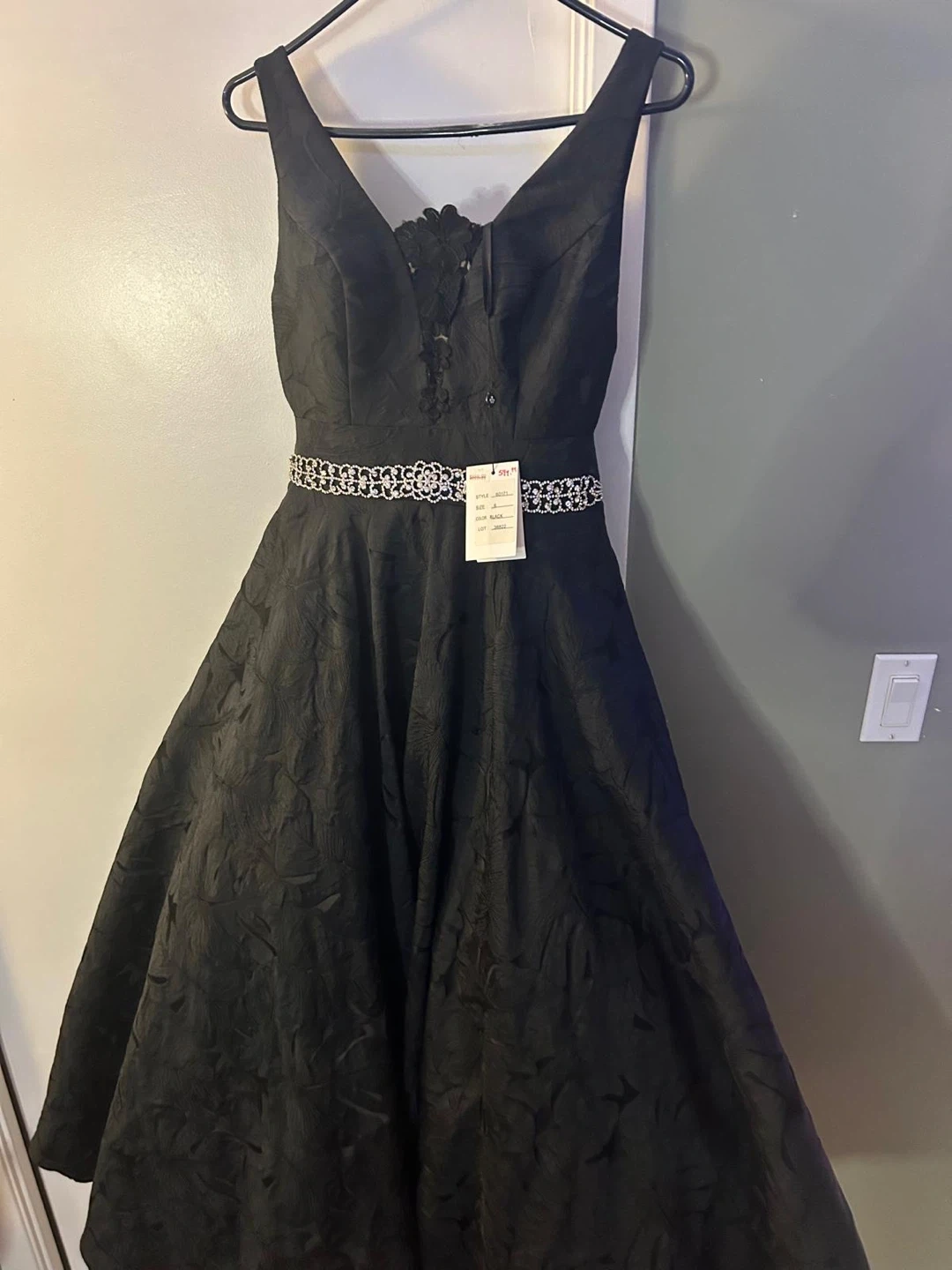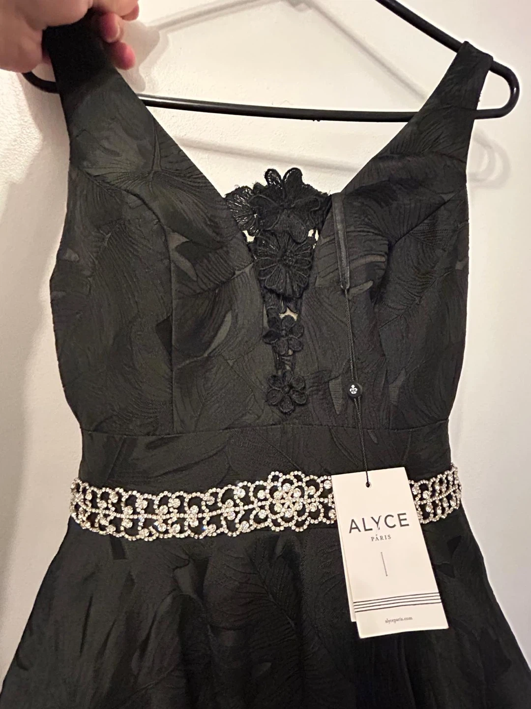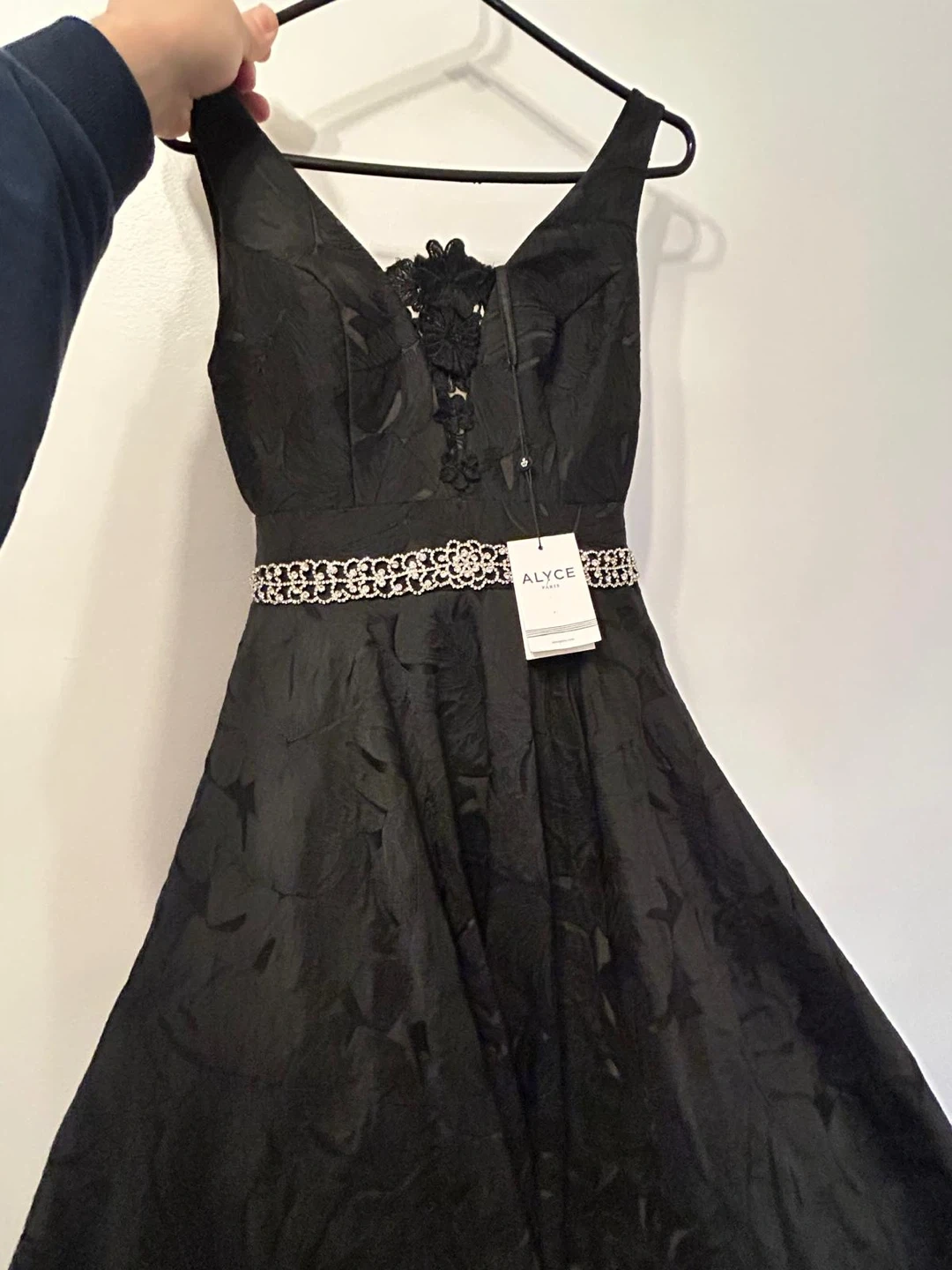 Selling a beautiful Alyce Paris black dress! It's a size 6 and features a lovely rhinestone belt. Originally bought for $889.99, this dress is in great condition and ready for a new home