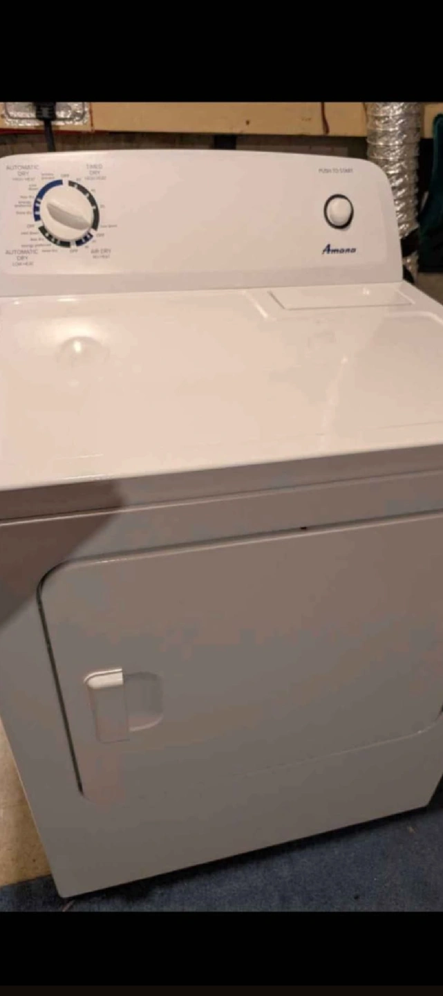 Moving must Go ASAP.. Selling a white Amana dryer. It's in excellent New working condition and ready to help with your laundry needs! Includes the vent hose.