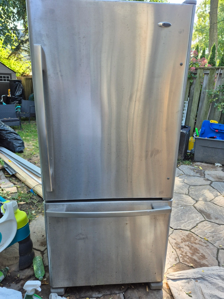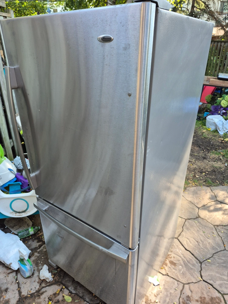 Selling an Amana brand refrigerator with a stainless steel finish. It includes all the shelves and drawers. It's in good working condition and ready for a new home! Worked perfectly for us for four years. For pick up. I cant transport it.